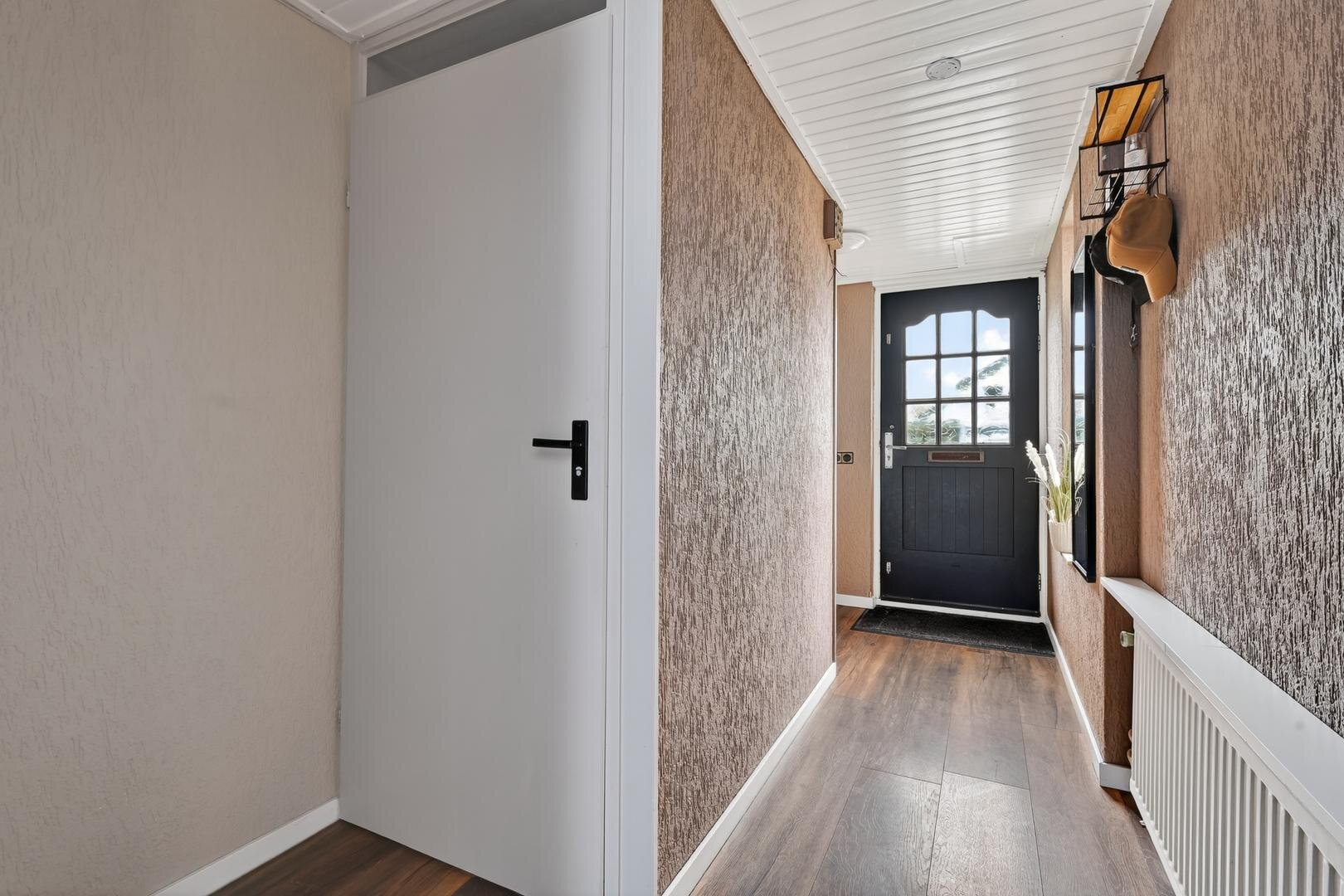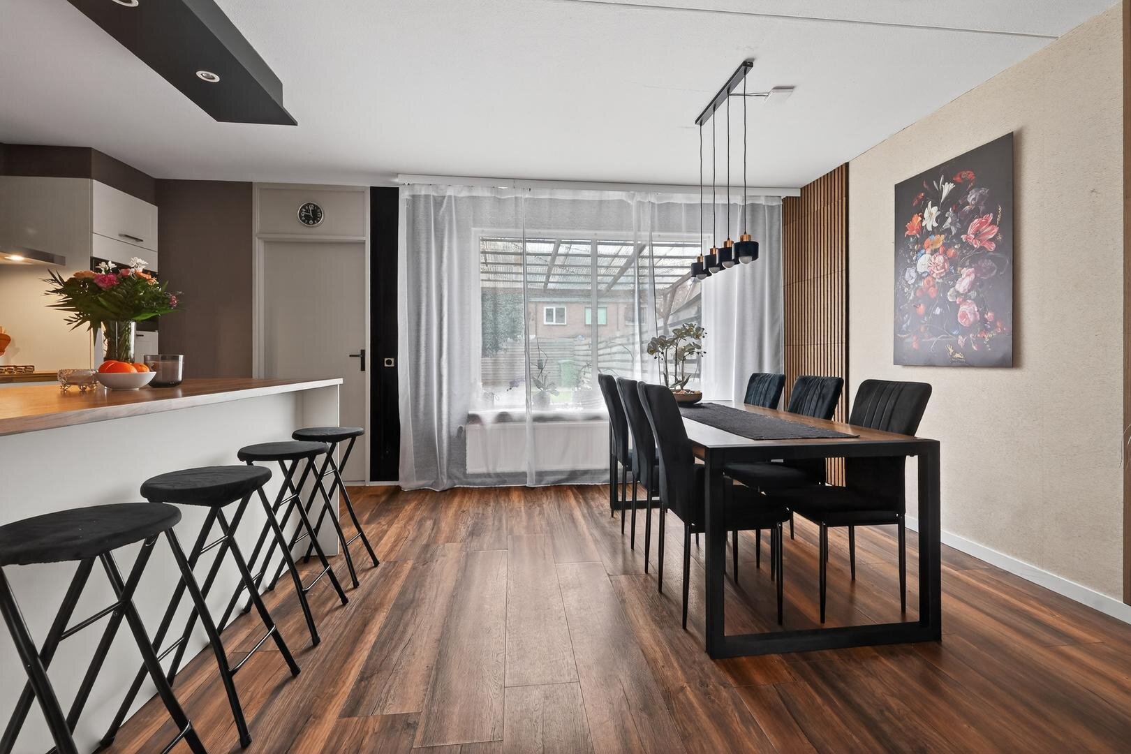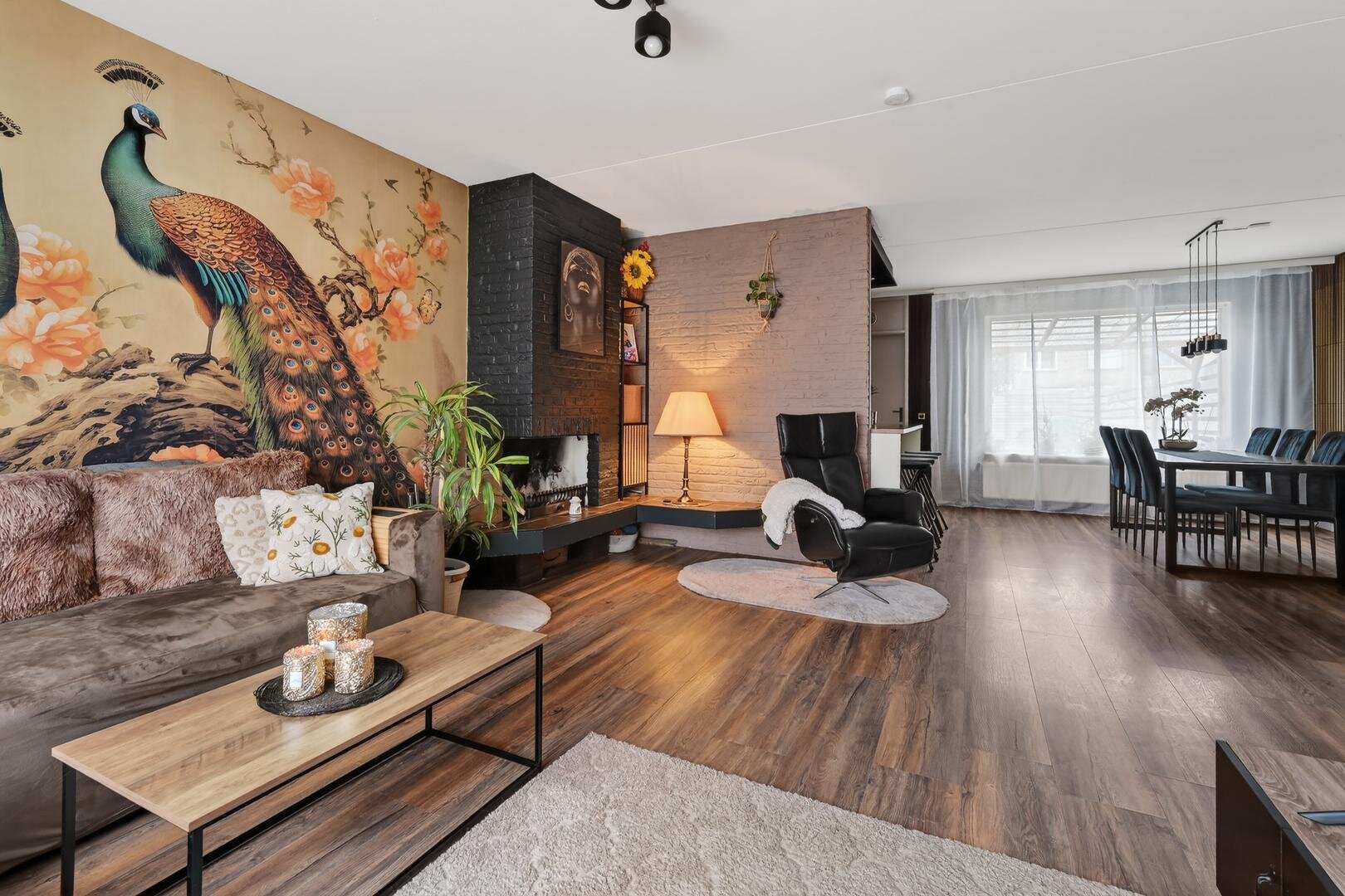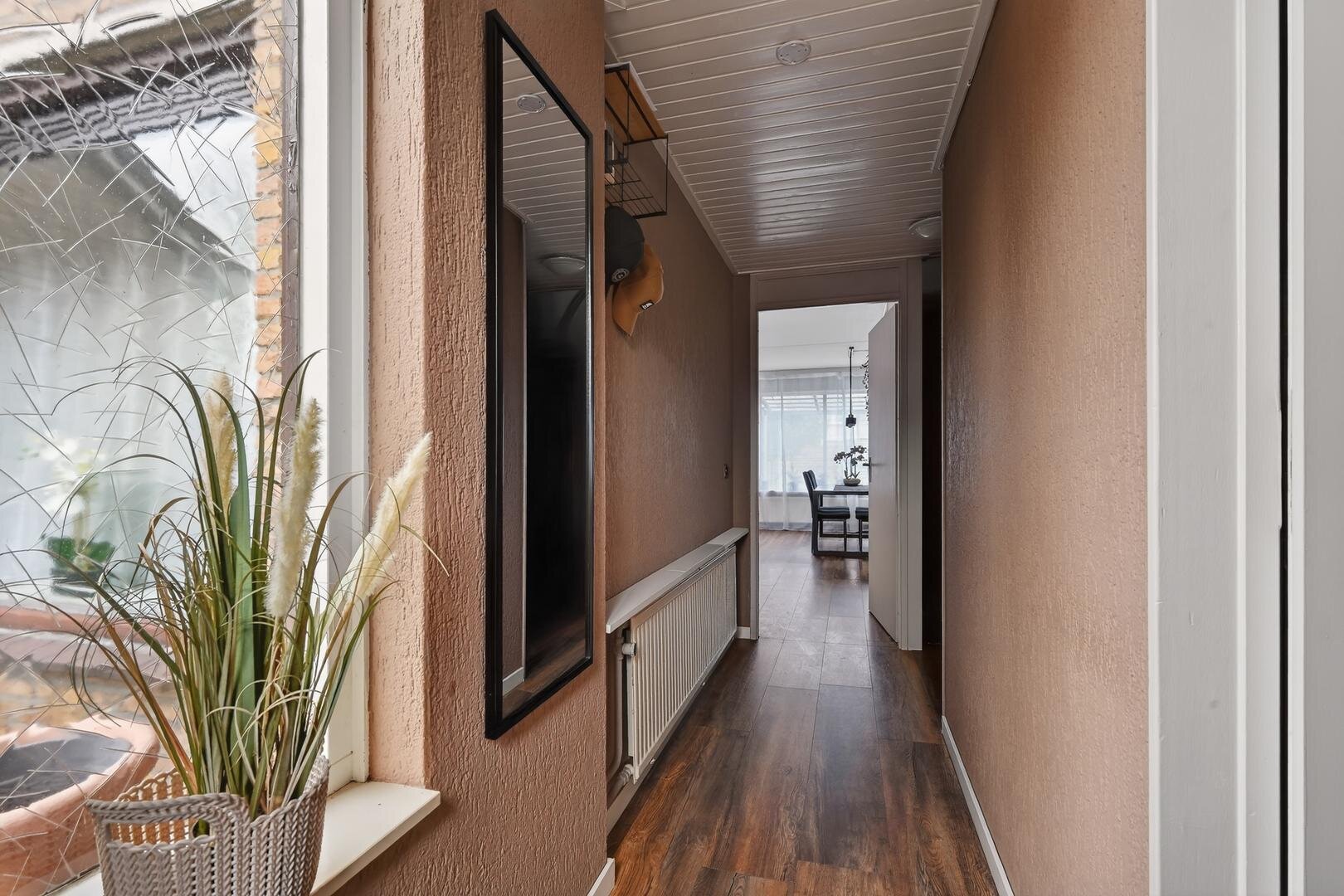Begane grond: bij binnenkomst kom je in een ruime hal met een apart toilet. Vanuit de hal leidt een trap naar de eerste verdieping en is er een royale kast onder de trap, ideaal voor opbergruimte. Vanuit de hal heb je toegang tot de lichte woonkamer, waar een sfeervolle open haard het middelpunt vormt. De woonkamer gaat naadloos over in de eetkamer, die weer grenst aan de open keuken. Deze keuken is volledig uitgerust met moderne inbouwapparatuur zoals koelkast, vaatwasser, 5-pits gaskookplaat, combi-oven en elektrische boiler. Aansluitend aan de keuken vind je de praktische bijkeuken met witgoedaansluitingen, die tevens toegang biedt tot de achtertuin.