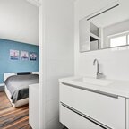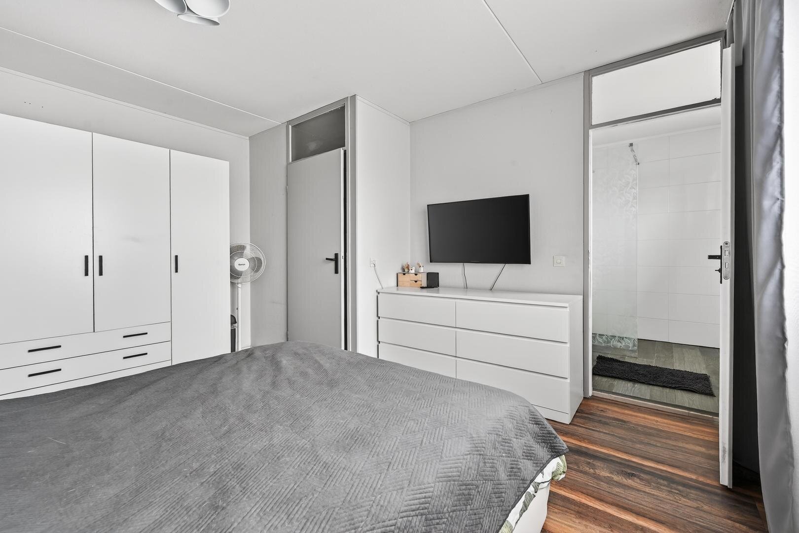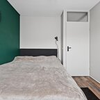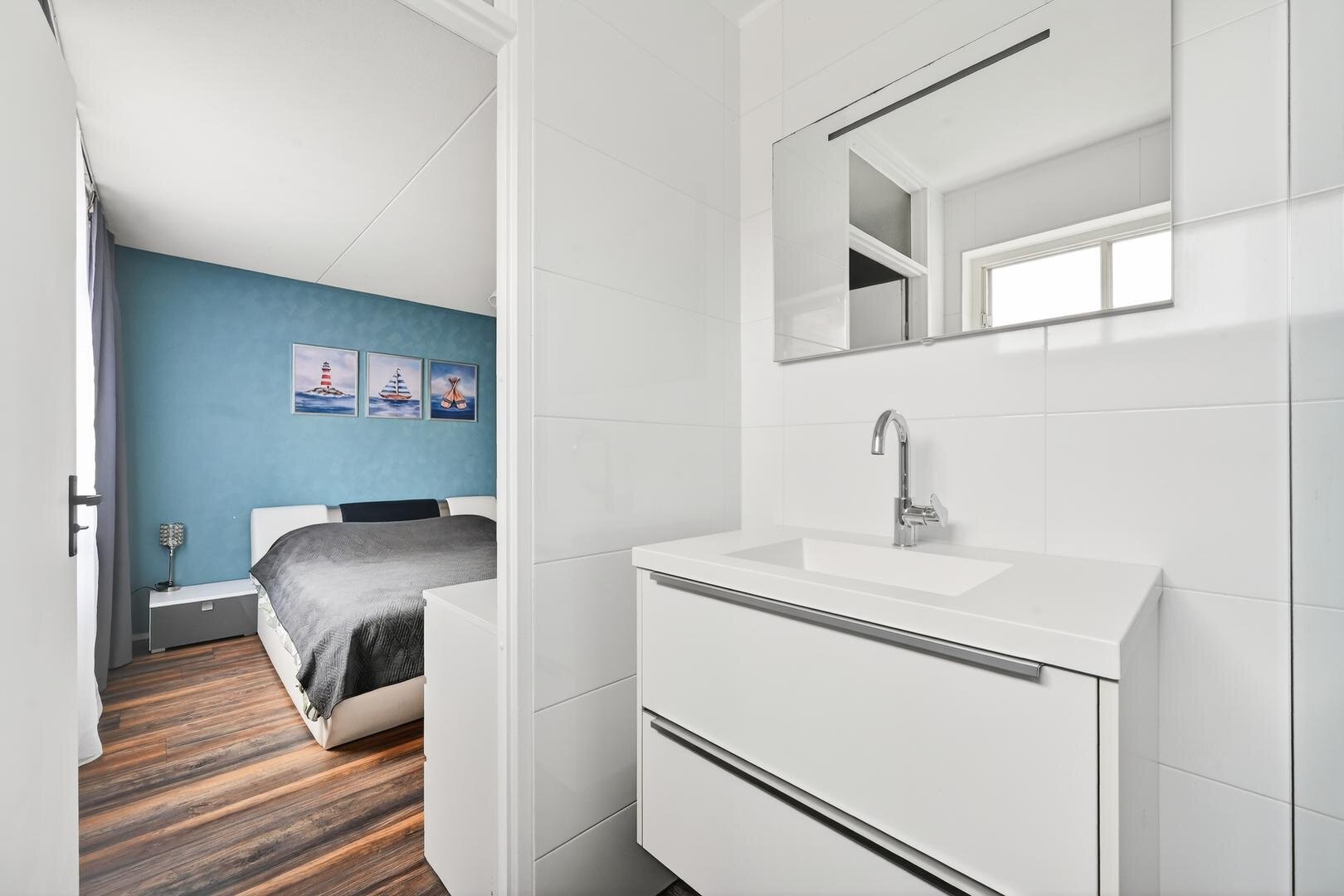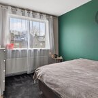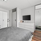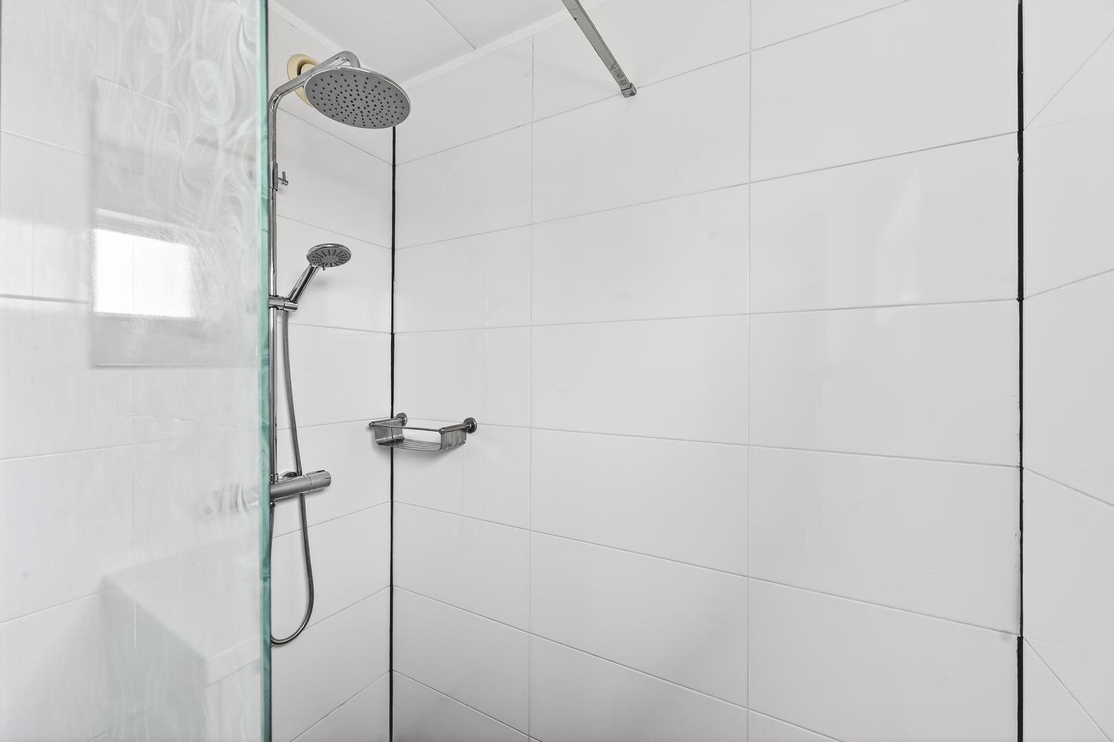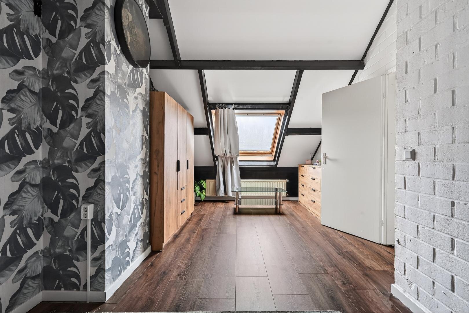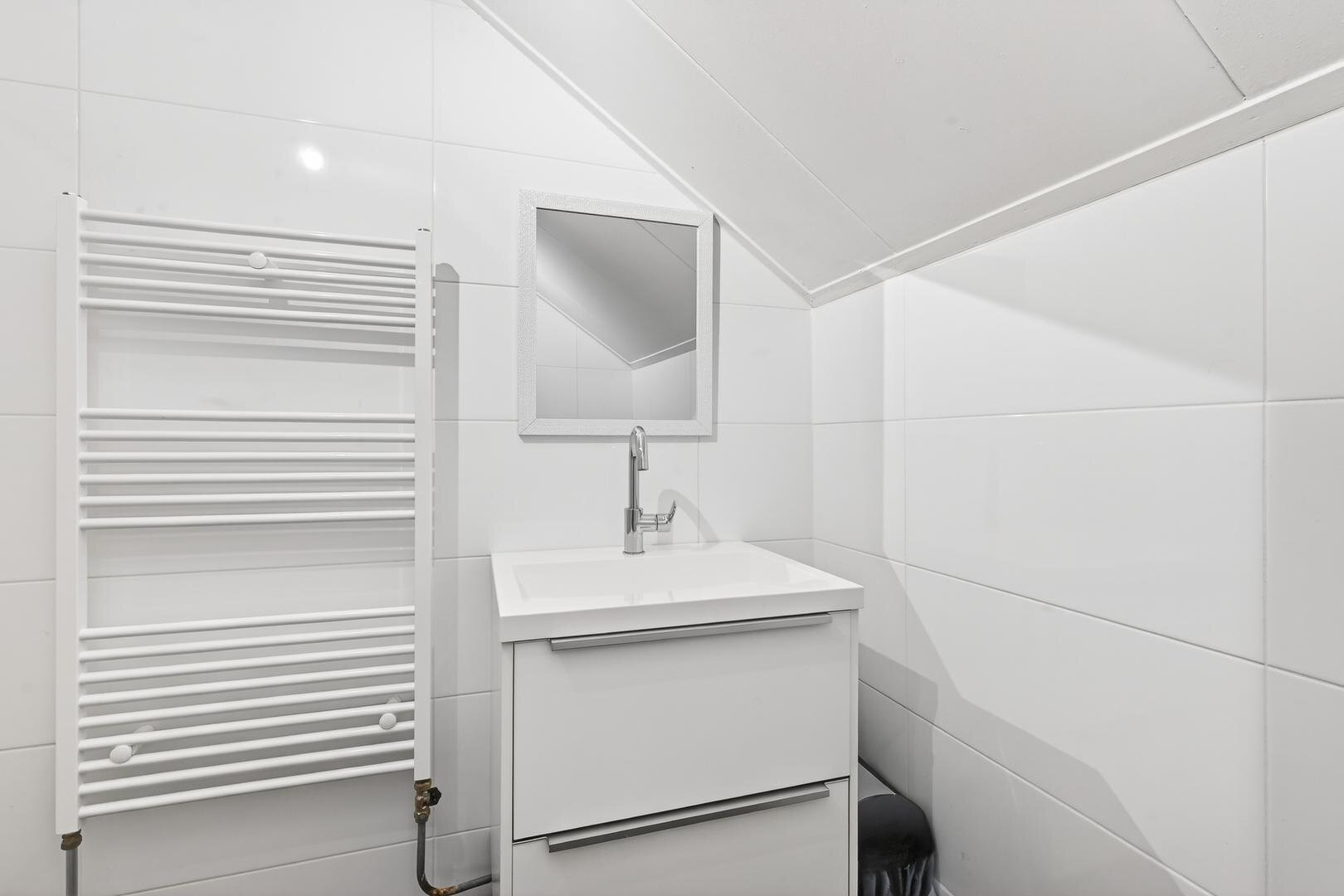 Tweede verdieping: Op de ruime overloop, die tevens voorzien is van royale opslagruimte, bevinden zich een tweede badkamer voorzien van douchehoek, wastafelmeubel en designradiator en de ruime slaapkamer en dankzij een groot dakraam wordt voorzien van veel natuurlijk licht. Geheel uit het zicht, in een nis achter de badkamer, is daarnaast de verwarmingsketel (bouwjaar 2021) weggewerkt.