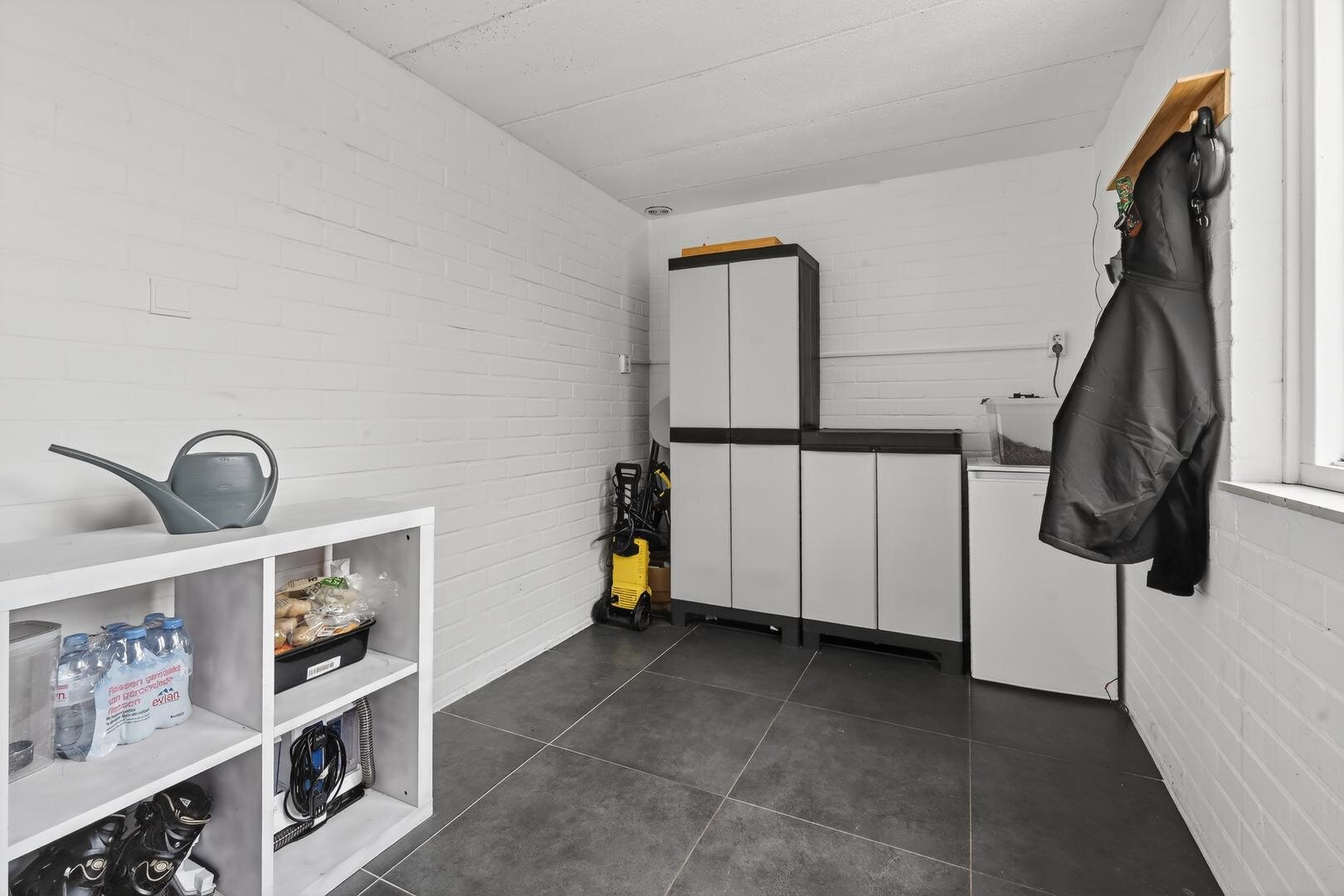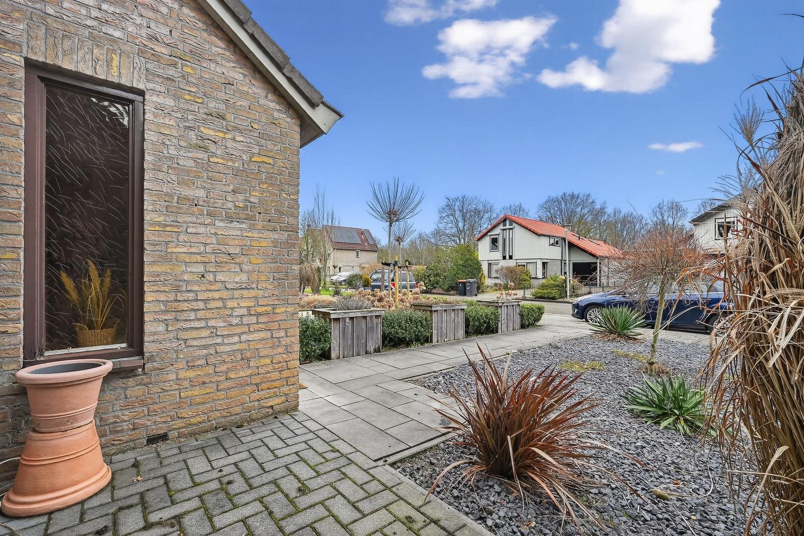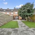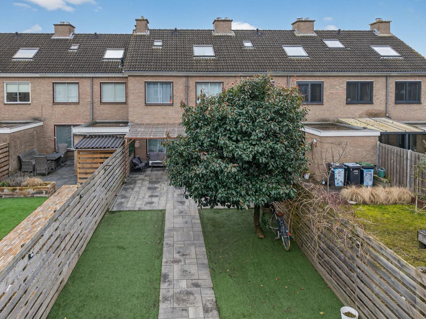 Tuin: de woning beschikt over een verrassend ruime, geheel onderhoudsvrije achtertuin. Aan het huis is een overkapping geplaatst, en de tuin is fraai ingericht met diverse zithoeken, zowel direct tegen de woning als aan de achterzijde van de tuin. Daarnaast is er een doorgang die toegang biedt tot het achtergelegen pad.