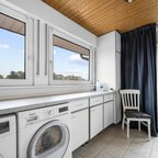 Eerste verdieping: overloop met vide, meterkast, 5 zeer ruime slaapkamers (met de mogelijkheid voor een 6e!) v.v. airco's, berging/hobbykamer, wasruimte en separate kamer voorzien van witgoedaansluitingen. De badkamer is voorzien van wastafelmeubel, ligbad, douchecabine, toilet en radiator. Het is tevens mogelijk om de bovenverdieping, gedeeltelijk of geheel in te richten voor dubbele bewoning. Alle benodigde aansluitingen zijn hiervoor reeds aanwezig. Er is tevens een "eigen" toegangstrap buitenom te bereiken naar de verdieping.
