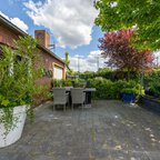 - kavelgrootte 1755 m2 eigen grond; perfecte zonligging, veel privacy;