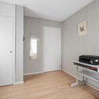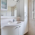Eerste verdieping: via de bordestrap de overloop waar vier slaapkamers op uitkomen, waarvan drie zijn voorzien van een vaste kast en één bovendien van een balkon, evenals een badkamer met wastafelmeubel, douchecabine, designradiator, mechanische ventilatie en elektrische vloerverwarming. Al met al is ook deze verdieping functioneel ingedeeld en eigentijds afgewerkt.