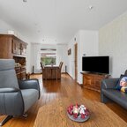 Begane grond: via de entree komt u in de hal met meterkast, gevolgd door een toiletruimte voorzien van toilet en fonteintje, een ruime doorzonwoonkamer met houten plankenvloer, een dichte keuken met koelkast, vaatwasser, inductiekookplaat, afzuigkap en oven, en een berging met CV-ketel (2023) + wasmachineaansluiting, waarna de woning binnendoor aansluit op de garage. De begane grond kenmerkt zich door de goede lichtinval, de fijne en functionele leefruimte en is eigentijds afgewerkt.