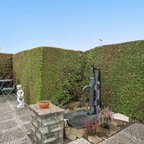 Tuin en bijgebouwen: de tuin, die op het zonnige zuidwesten ligt, is mooi aangelegd met een bloementuin, borders, bestrating en een gazon, en bevat tevens een aangebouwde stenen garage met elektrische deur, een overdekte aluminium veranda en een blokhut op betonplaat.