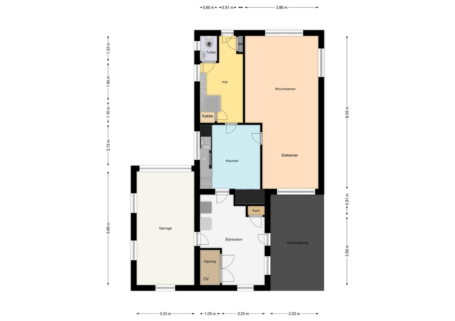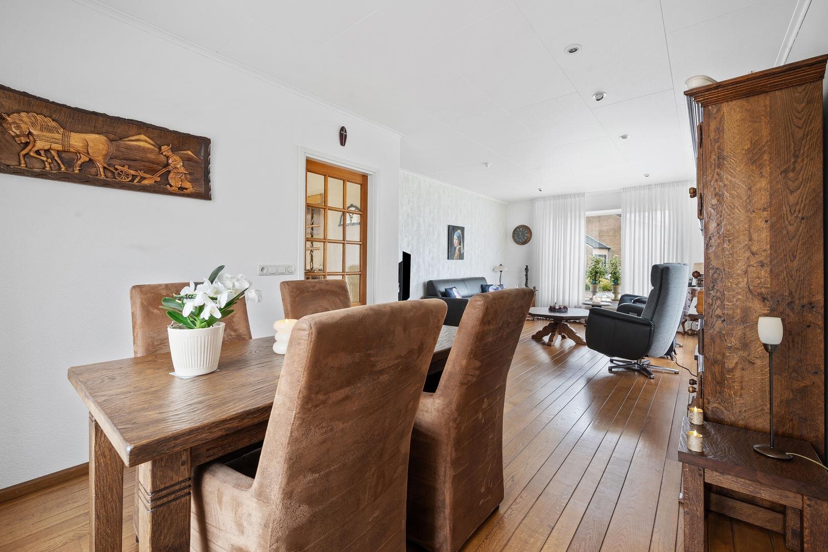 Begane grond: via de entree komt u in de hal met meterkast, gevolgd door een toiletruimte voorzien van toilet en fonteintje, een ruime doorzonwoonkamer met houten plankenvloer, een dichte keuken met koelkast, vaatwasser, inductiekookplaat, afzuigkap en oven, en een berging met CV-ketel (2023) + wasmachineaansluiting, waarna de woning binnendoor aansluit op de garage. De begane grond kenmerkt zich door de goede lichtinval, de fijne en functionele leefruimte en is eigentijds afgewerkt.