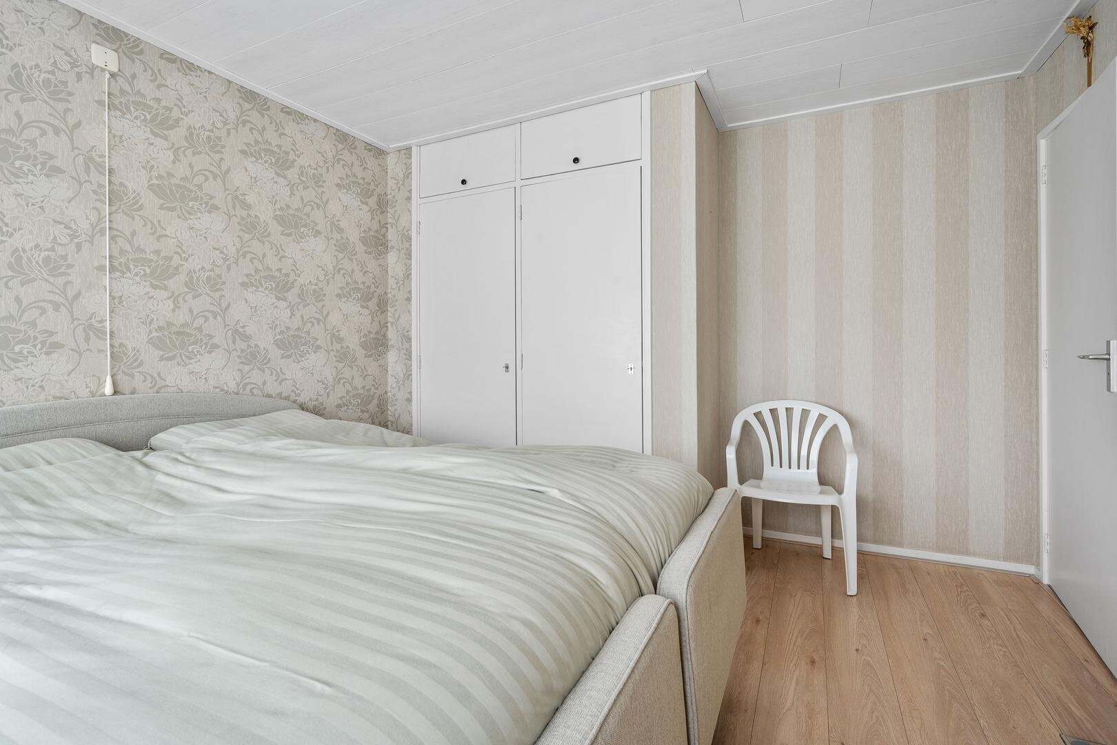 Tweede verdieping: een handige vlizotrap vormt de verbinding naar de extra opslagruimte op zolder. Deze verdieping is een functionele aanvulling op het geheel en biedt verrassend veel bergruimte.