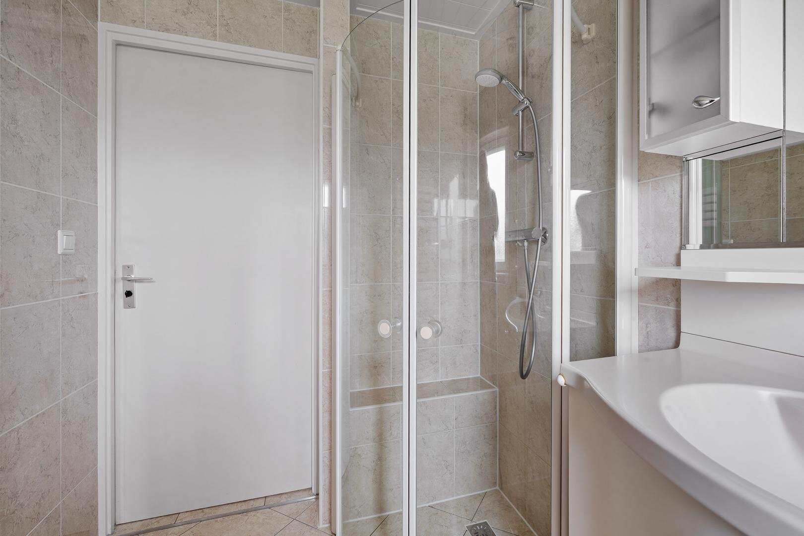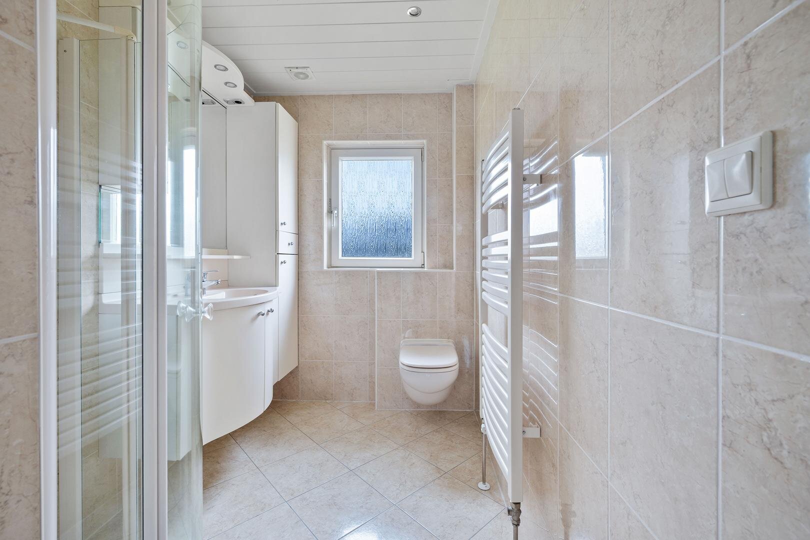 Eerste verdieping: via de bordestrap de overloop waar vier slaapkamers op uitkomen, waarvan drie zijn voorzien van een vaste kast en één bovendien van een balkon, evenals een badkamer met wastafelmeubel, douchecabine, designradiator, mechanische ventilatie en elektrische vloerverwarming. Al met al is ook deze verdieping functioneel ingedeeld en eigentijds afgewerkt.