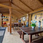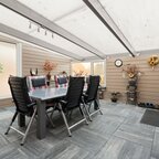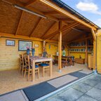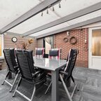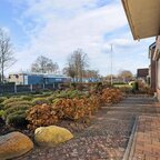 Tuin en bijgebouwen: De woning beschikt over een voortuin die als siertuin is aangelegd. Naast de woning is een inrit aanwezig die toegang geeft tot de achterzijde, waar twee vrijstaande stenen garages met elektrische deur en betonvloer staan en een overkapping, ideaal als caravanstalling. Aan de woning zelf is een overdekte tuinkamer/serre gerealiseerd (2023), eveneens voorzien van een betonvloer en een overdekte zonnescherm. De achtertuin, gelegen op het noorden, is onderhoudsarm ingericht en biedt ruimte voor bijvoorbeeld een moestuintje, verschillende terrassen en een afsluitbare kapschuur met overkapping.