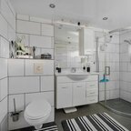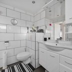 Eerste verdieping: de overloop geeft toegang tot drie ruime slaapkamers, elk voorzien van een vaste kasten die ruime opbergmogelijkheden biedt. De badkamer is compleet ingericht en voorzien van wastafelmeubel, douchecabine, 2e toilet en designradiator. Vanaf de overloop is tevens een dakterras van ca. 11m² bereikbaar.