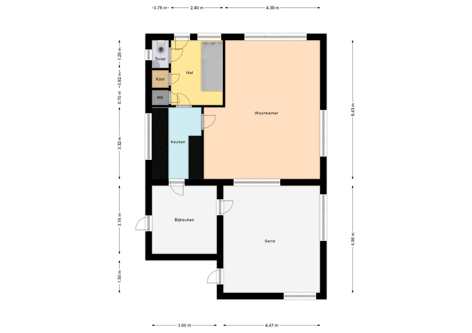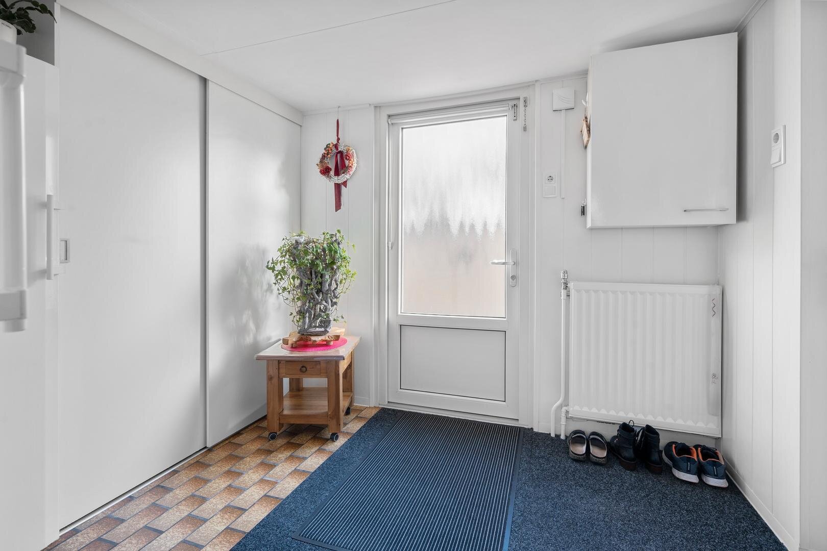 Begane grond: de woning beschikt over een ruime hal/entree waar de meterkast zich bevindt. Vanuit de hal is de moderne toiletruimte bereikbaar, evenals een vaste kast die zorgt voor extra opbergruimte. Aansluitend biedt de woonkamer een prettige leefruimte die straatgericht is. De dichte keuken met lichte inbouwkeuken is voorzien van een inductiekookplaat, afzuigkap en combimagnetron. Via de keuken is er toegang tot de berging, waar de cv-installatie en een witgoedaansluiting aanwezig zijn. Tot slot zorgt een wand met vaste kasten voor royale bergruimte. De kers op de taart is de overdekte tuinkamer/serre (2023), deze prettige leefruimte is circa 22m² groot, binnendoor te bereiken en v.v. betonvloer en zonnescherm. In ieder jaargetij is het hier heerlijk vertoeven.