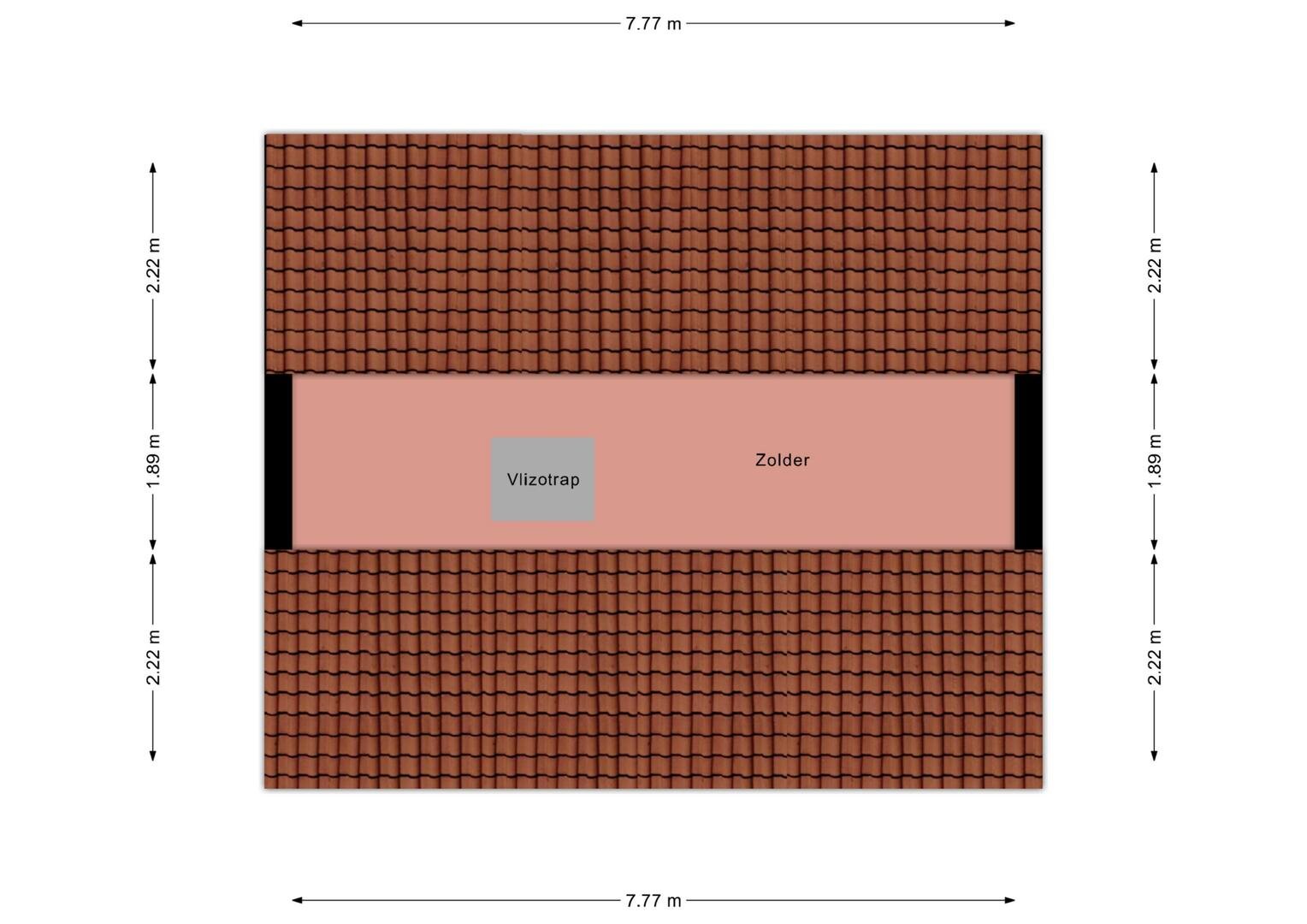 Zolder: via een vlizotrap is de zolderberging bereikbaar, die volledig begaanbaar is en ideaal geschikt is voor opslag van spullen e.d.