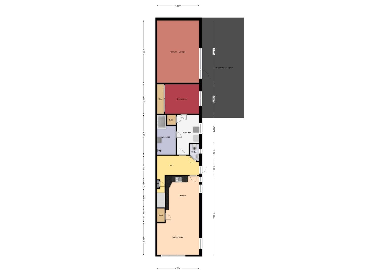 - er is een riante houten schuur/garage aanwezig (25m²) en carport van circa 22m²;