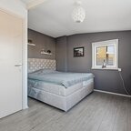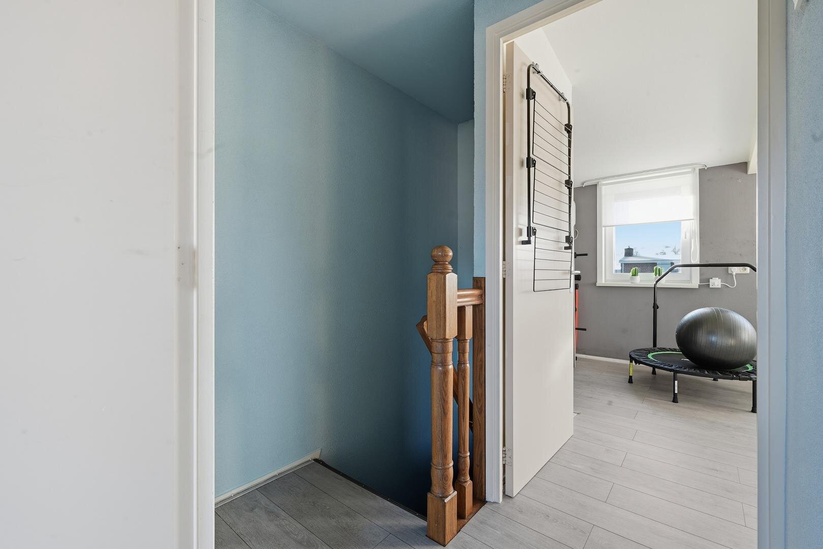 Eerste verdieping: via de vaste trap bereikt u de overloop met toegang tot twee ruime slaapkamers, waarbij alle wanden, plafonds en vloeren netjes zijn afgewerkt en de vertrekken modern zijn ingericht.