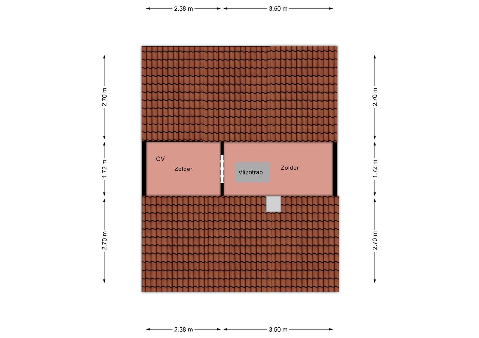Tweede verdieping: de zolderverdieping is bereikbaar via een vlizotrap. Het betreft een ruime zolder die geheel is geïsoleerd en momenteel als berging in gebruik is. De verdieping biedt de gelegenheid om een extra kamer te realiseren. Er is een dakraam aanwezig en tevens is hier de cv-ketel en omvormer (zonnepanelen) gesitueerd.