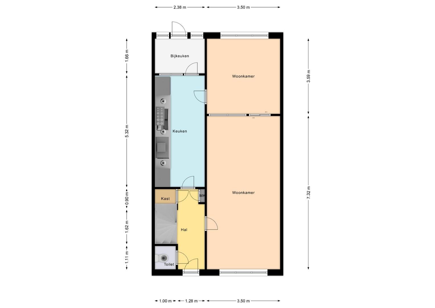 - in de jaren '90 is de woning uitgebouwd met circa 12m²;