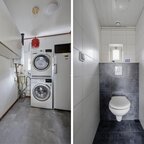 Begane grond: hal/entree, meterkast, toiletruimte (2021) en een gemoderniseerde badkamer(2025), voorzien van wastafel met meubel en douchehoek, aansluitend is de slaapkamer te bereiken. De woonkamer is voorzien van een sfeervolle pelletkachel, wat zorgt voor een aangename warmte op koude dagen. Aansluitend aan de woonkamer bevindt zich een opkamertje, dat zich goed leent als thuiswerkplek of speelkamer. De dichte keuken is volledig uitgerust met een moderne inbouwkeuken en apparatuur; koelkast, vaatwasser, inductiekookplaat, afzuigkap en oven, tussenhal met trapopgang naar boven en vaste kast, ook is er een aparte wasruimte met witgoedaansluiting en ruimte voor de CV-ketel. Daarnaast beschikt de woning over een droge kelder, wat zorgt voor extra opslag.