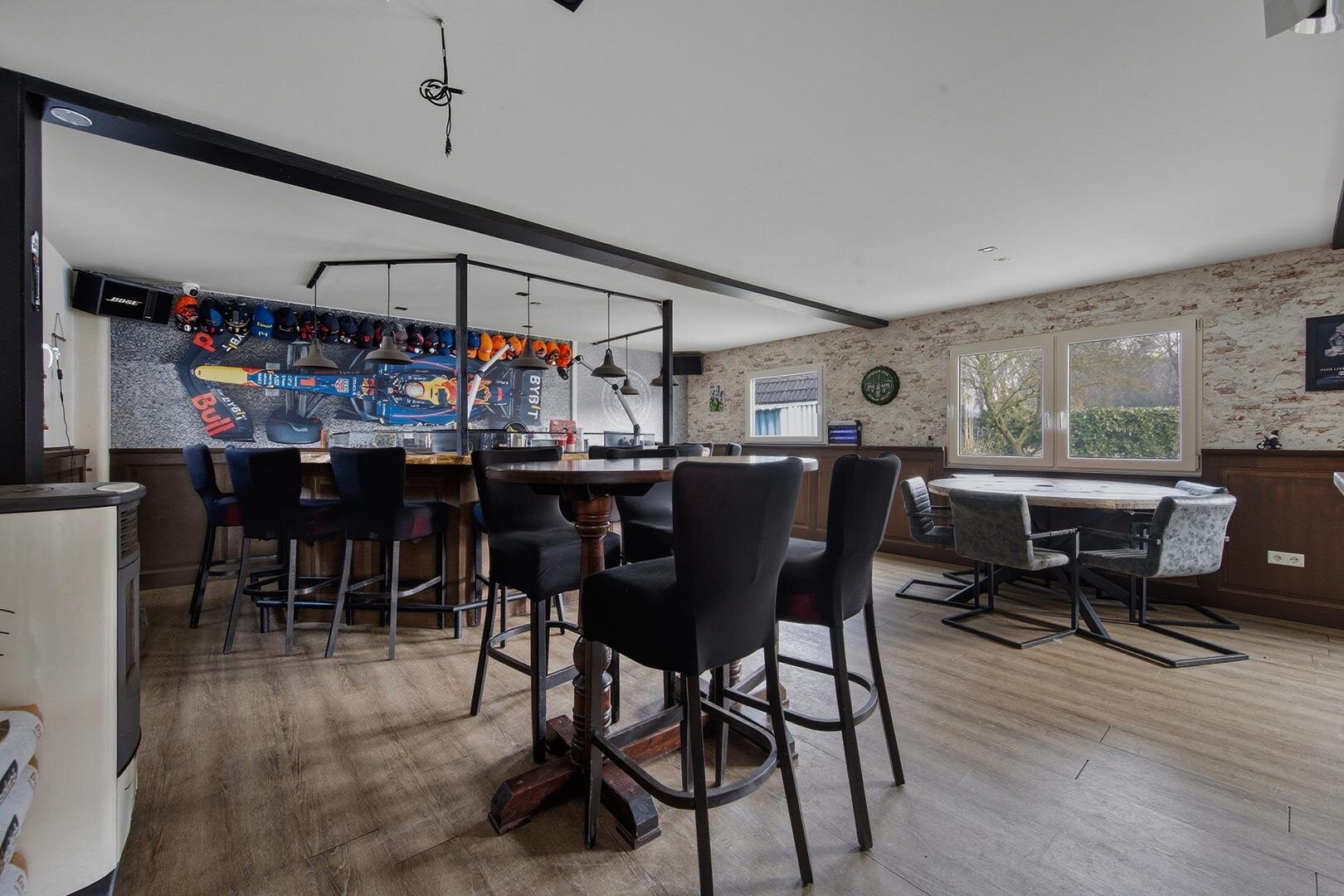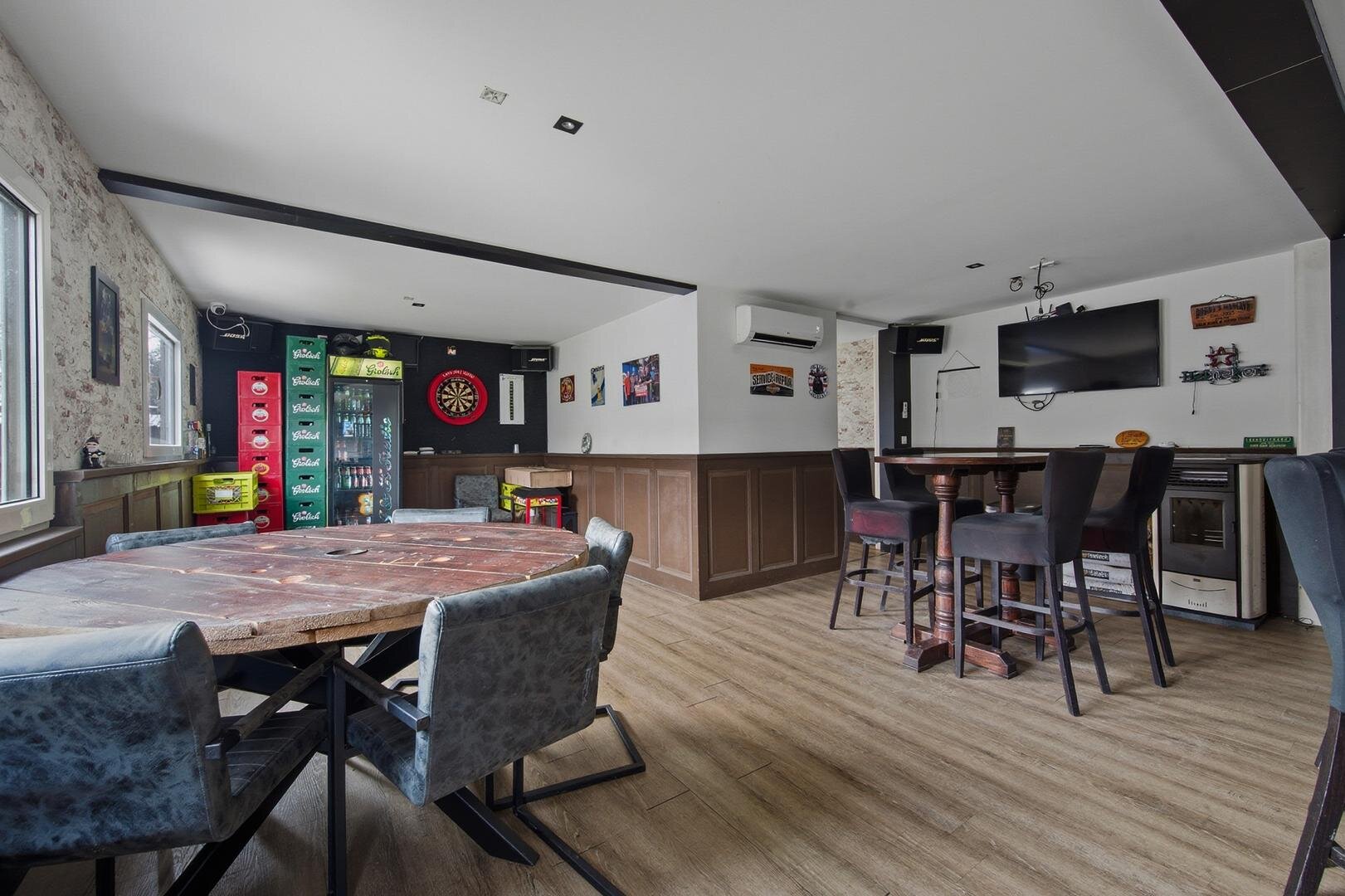 Verder vind je op het erf een combinatie van een stenen schuur en een garage, voorzien van een royale overkapping. Deze biedt beschutting aan meerdere voertuigen of creëert een fijne buitenruimte waar je ook bij minder goed weer kunt verblijven. Het meest bijzondere gebouw is echter het vrijstaande bijgebouw. Dit object is volledig geïsoleerd en daardoor het hele jaar door comfortabel. Met een eigen verwarming en koeling, een eigen toilet (2x) en een sfeervolle pelletkachel is dit een volwaardige en zelfstandige ruimte. Het leent zich dan ook uitstekend voor verschillende doeleinden, zoals een gastenverblijf, mantelzorg, een rustige thuiswerkplek of een comfortabele logeerkamer voor gasten.