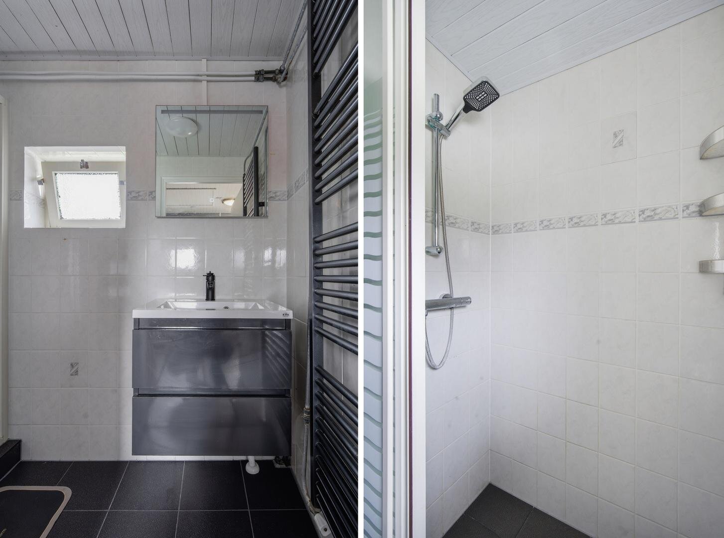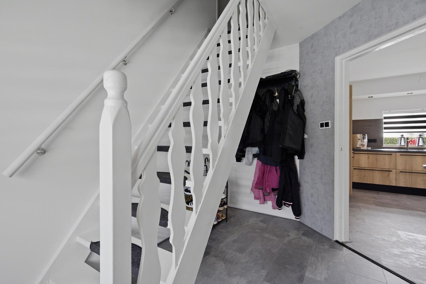 Begane grond: hal/entree, meterkast, toiletruimte (2021) en een gemoderniseerde badkamer(2025), voorzien van wastafel met meubel en douchehoek, aansluitend is de slaapkamer te bereiken. De woonkamer is voorzien van een sfeervolle pelletkachel, wat zorgt voor een aangename warmte op koude dagen. Aansluitend aan de woonkamer bevindt zich een opkamertje, dat zich goed leent als thuiswerkplek of speelkamer. De dichte keuken is volledig uitgerust met een moderne inbouwkeuken en apparatuur; koelkast, vaatwasser, inductiekookplaat, afzuigkap en oven, tussenhal met trapopgang naar boven en vaste kast, ook is er een aparte wasruimte met witgoedaansluiting en ruimte voor de CV-ketel. Daarnaast beschikt de woning over een droge kelder, wat zorgt voor extra opslag.