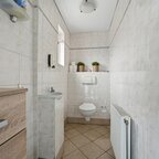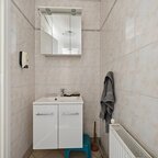 Begane grond: bij binnenkomst in de hal komt u direct in het centrale punt van de woning. Vanuit de hal is de meterkast bereikbaar en heeft u toegang tot de woonkamer. De woonkamer is straatgericht met prima lichtinval en is zeer ruim te noemen, via een open doorgang is de aanbouw te bereiken. In deze aanbouw bevindt zich de dichte keuken, die is ingericht met een functionele inbouwkeuken en apparatuur; koelkast, vaatwasser, gaskookplaat, afzuigkap en combimagnetron. Ook zijn hier de witgoedaansluitingen gerealiseerd. Vanuit de tussenhal bereikt u daarnaast een aparte cv-berging met vaste kast en een separaat toilet. De badkamer is voorzien van een wastafel met bijpassend meubel en een ruime douchehoek.