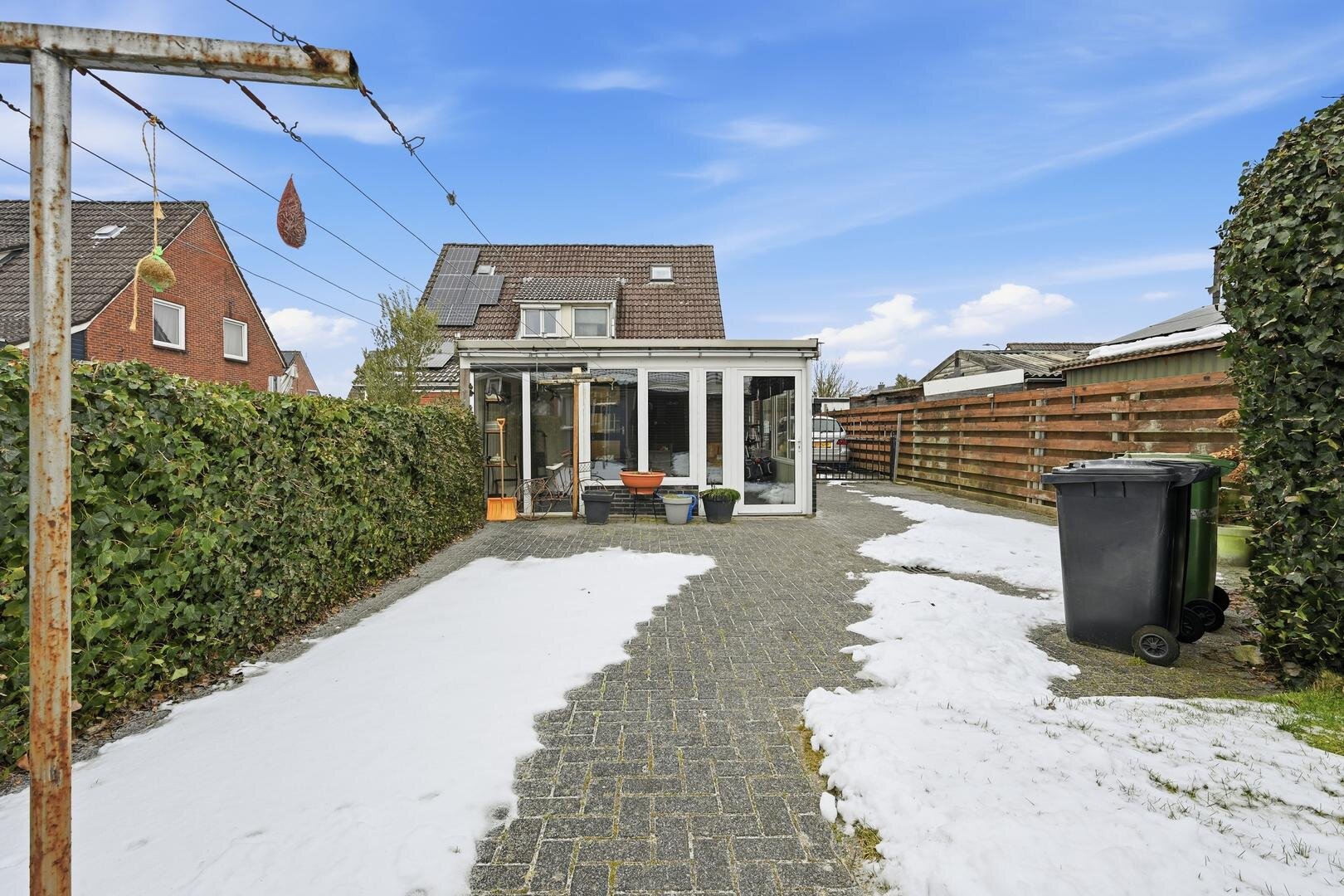 In een leuke woonwijk staat deze verzorgde 2^1 kapwoning. Het geheel is gelegen op een ruime kavel van 393m² eigen grond en de woning verkeert in een goede staat van onderhoud. De indeling is compleet te noemen: een dichte aanbouwkeuken, een badkamer op de begane grond, 3 ruime slaapkamers boven en een sfeervolle tuinkamer waar je het hele jaar door kunt genieten. In 2003 is de woning aan de achterzijde uitgebouwd met een aanbouw, waarin de praktische keuken is gerealiseerd. De royale achtertuin is een ware zonvanger, gelegen op het zuiden. Hier kun je tot laat in de middag heerlijk buiten zitten, met voldoende privacy dankzij de ruim opgezette tuin. Ook praktisch: aan de zijkant van de woning bevindt zich een oprit, zodat je altijd op eigen terrein kunt parkeren. De woning staat in een gezellige jaren '50-wijk in Klazienaveen en alle voorzieningen en uitvalswegen liggen op loop- of fietsafstand. Kortom: een complete woning, klaar om direct te betrekken en te bewonen.