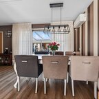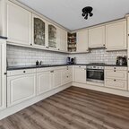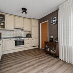 begane grond: de entree vormt de toegang tot de hal, waarin zich de meterkast en een aparte toiletruimte bevinden. Vanuit de hal bereikt u de ruime L-vormige woonkamer, die dankzij de royale raampartijen aan de voorzijde wordt gekenmerkt door een overvloed aan natuurlijk licht. De halfopen keuken sluit naadloos aan op de woonkamer en is voorzien van ingebouwde apparatuur: een koelkast, vaatwasser, 4-pits gaskookplaat, oven en afzuigkap. aansluitend is de handige bijkeuken gelegen, die via een binnendeur directe toegang biedt tot de verlengde garage, een praktische indeling die dagelijks gemak en flexibiliteit combineert.