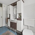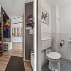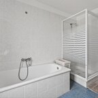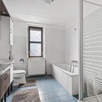 Eerste verdieping: de overloop biedt toegang tot een vaste kast en drie slaapkamers. De functionele badkamer is compleet ingericht met ligbad, een ruime douchecabine, wastafelmeubel en tweede toilet, alles bij elkaar een comfortabele en doordachte indeling die het woongenot op de verdieping compleet maakt.