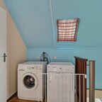 Tweede verdieping: een vaste trap leidt naar de overloop, waar tevens de witgoedaansluitingen zijn gesitueerd. Vanaf de overloop zijn nog eens twee slaapkamers bereikbaar: één slaapkamer is voorzien van een dakraam en praktische knieschotten, de andere slaapkamer beschikt over een ruime dakkapel en een aparte cv-berging. Deze indeling biedt optimaal gebruiksgemak en een doordachte benutting van de ruimte onder de kap.