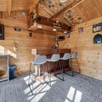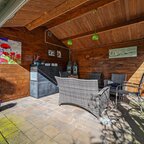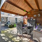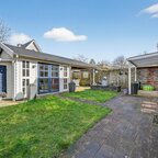 Tuin en bijgebouwen: de achtertuin is gelegen op het noorden, maar kent dankzij de ruimtelijke opzet een prima zonligging. Aan de woning is een aangebouwde stenen garage met elektra en een loopdeur gerealiseerd, evenals een carport. Aan de achterzijde van de woning bevindt zich een aluminium overkapping, terwijl in de tuin een houten vrijstaande blokhut staat, voorzien van een gezellige mancave en een eigen overkapping. Het geheel vormt een sfeervolle tuin om heerlijk in te vertoeven. Via de voorzijde is op ca. 50 meter afstand bovendien natuurschoon en bossingel te bereiken.