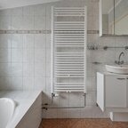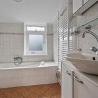 Eerst verdieping: overloop, 2 ruime slaapkamers v.v. vaste kast(en), complete badkamer voorzien van wastafelmeubel, ligbad, douchehoek en designradiator.