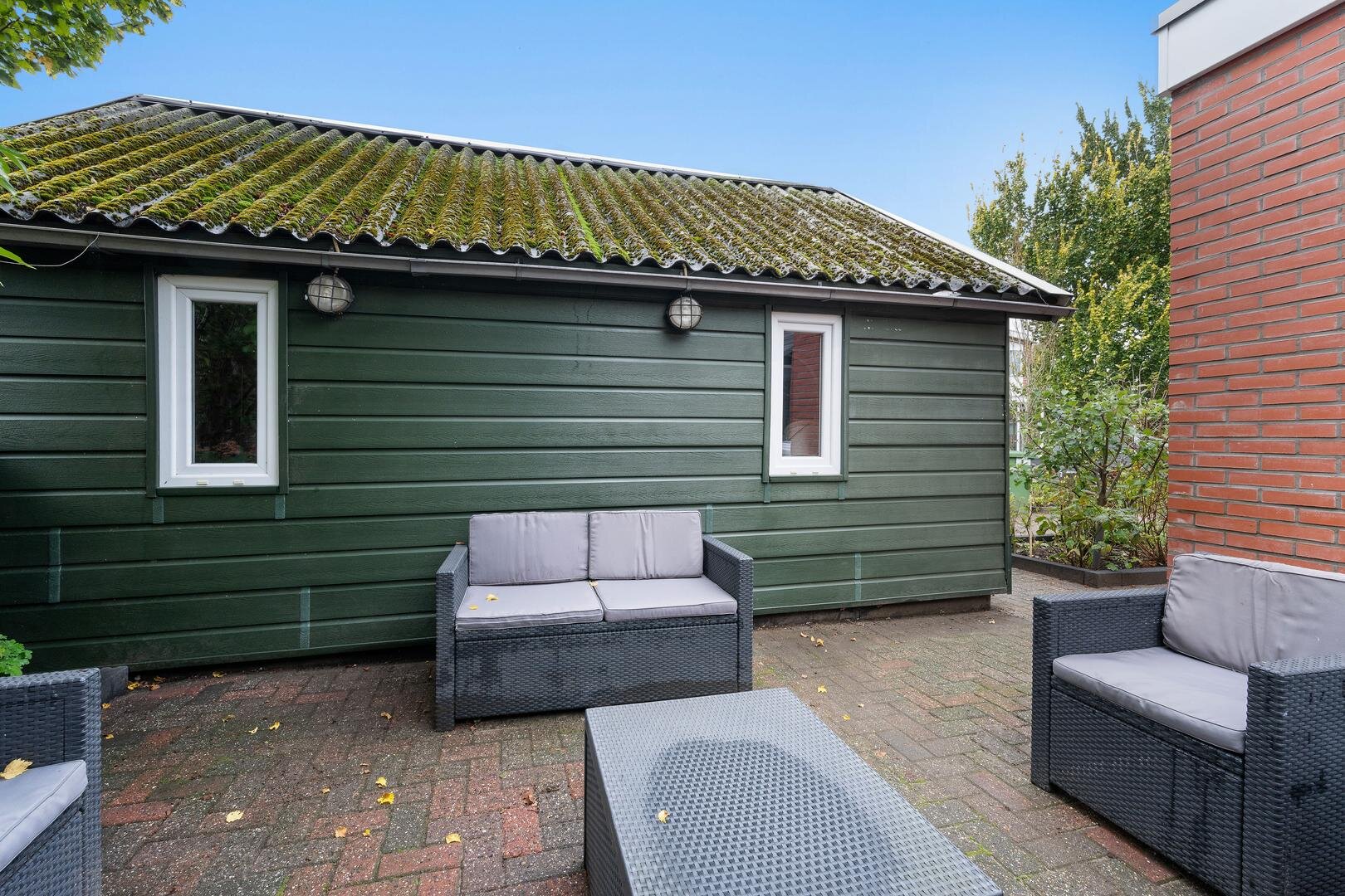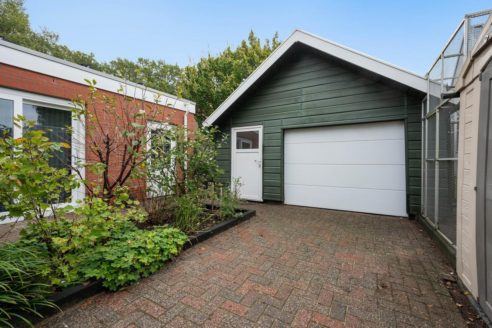 Tuin en bijgebouwen: de zonrijke tuin op het zuiden beschikt over een houten schuur/garage van circa 30m². De naastgelegen inrit biedt ruimte voor meerdere auto's op eigen terrein. De tuin is netjes onderhouden en compact van opzet, met een praktische indeling.
