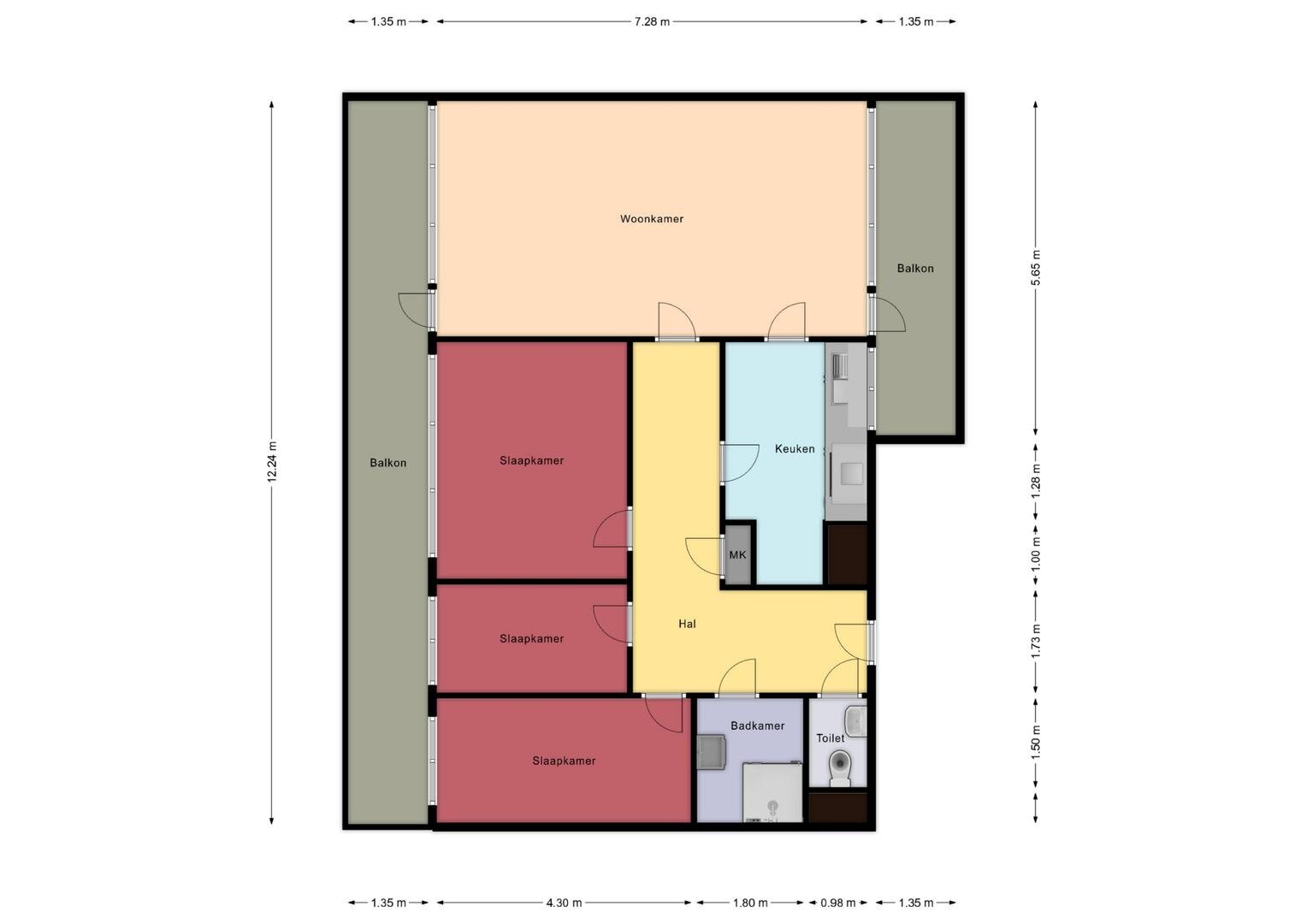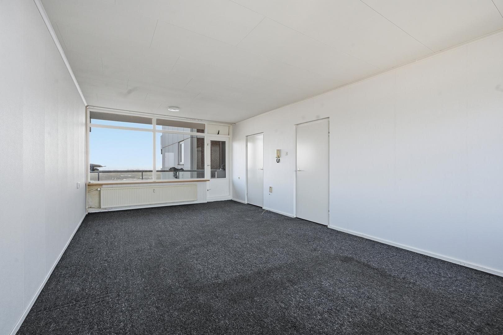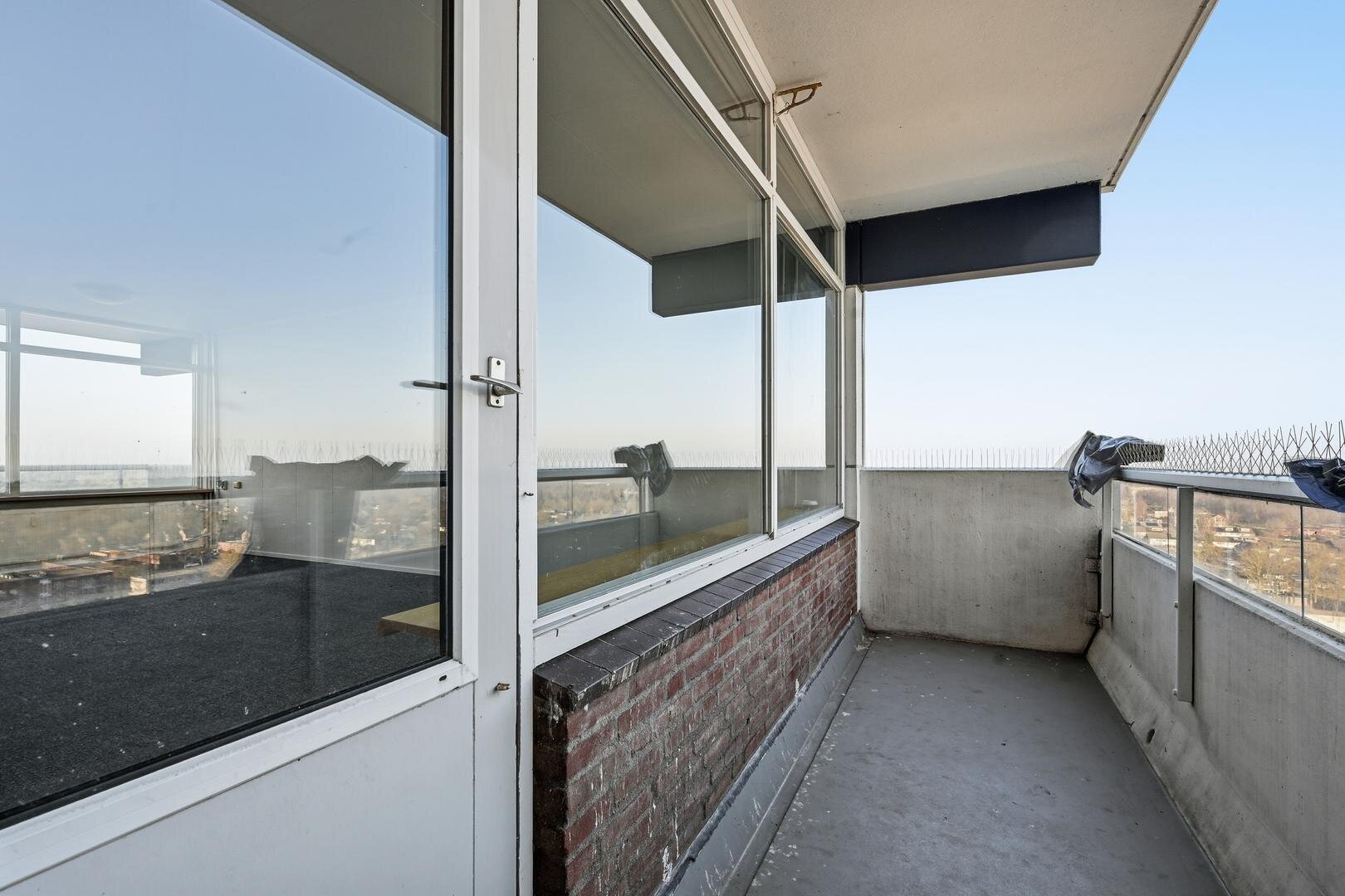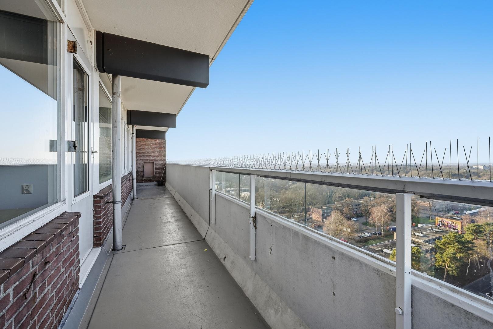 16e verdieping: ruime hal/entree met meterkast en toiletruimte. Vanuit de hal naar de doorzon woonkamer met toegang tot 2 balkons, een dichte keuken voorzien van een functionele inbouwkeuken met 4-pits gaskookplaat, afzuigkap en koelkast, 3 prima slaapkamers en een functionele badkamer uitgerust met een douchecabine en wastafelmeubel.