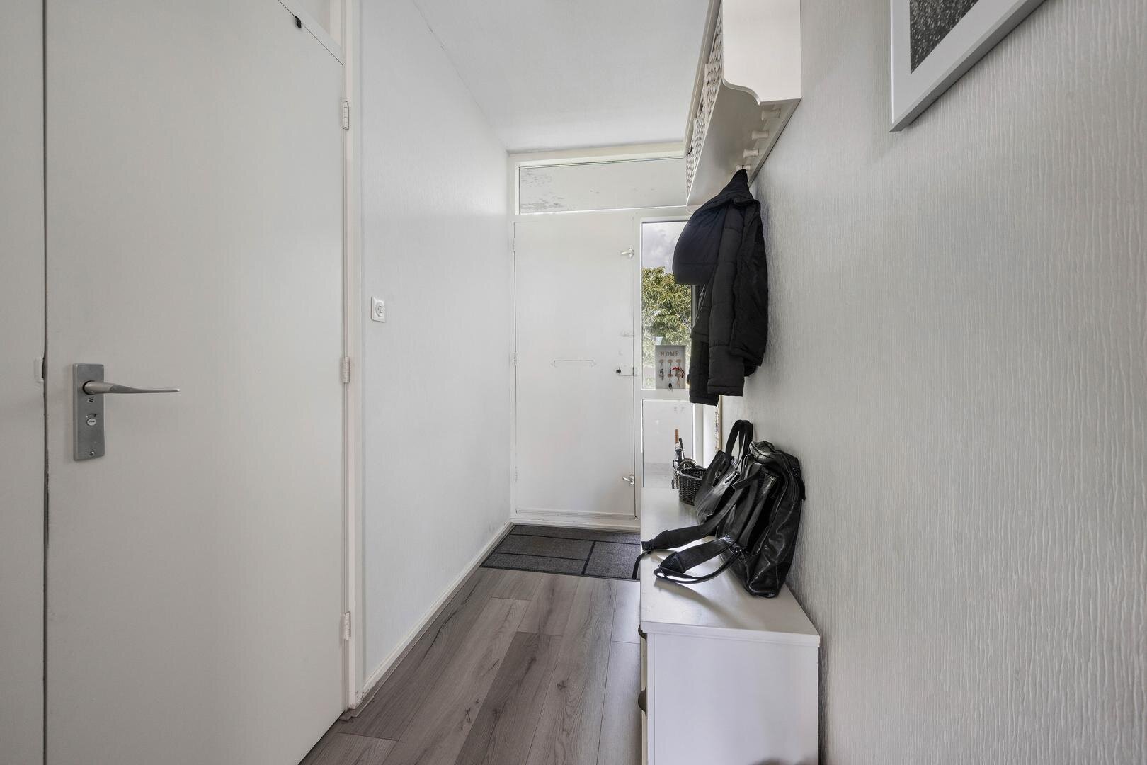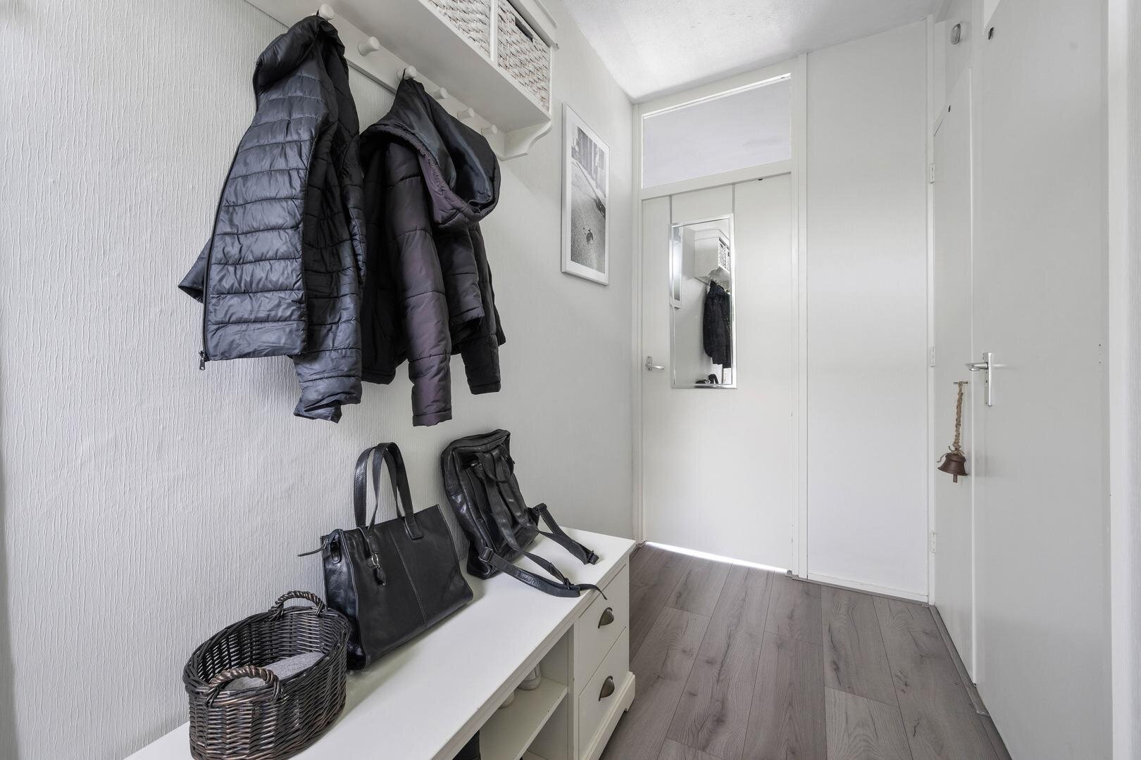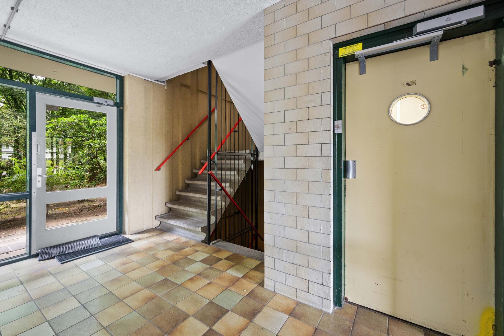 Begane grond: vanuit de afgesloten entree met intercom systeem bereikt u via de lift of het trappenhuis met bordestrap de zesde verdieping, waarna u via de galerij bij de entree van appartement komt, die de volgende indeling heeft:
