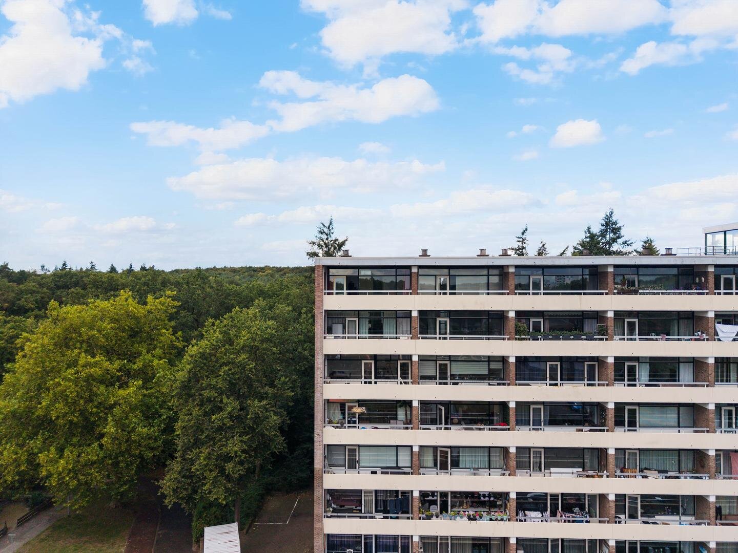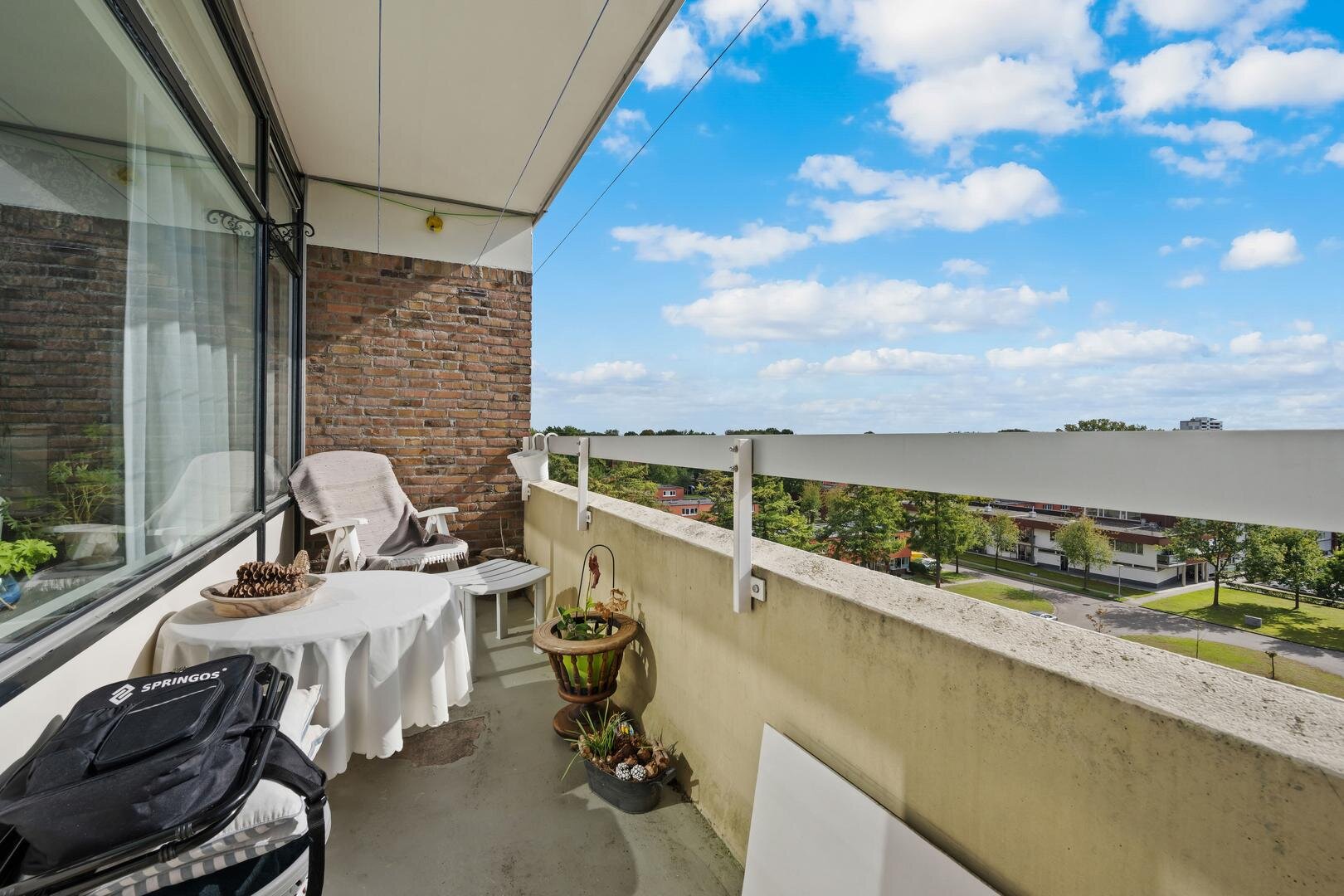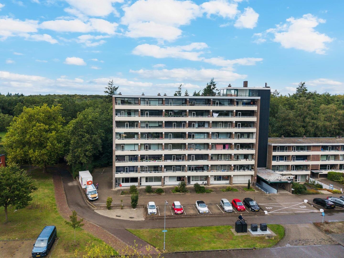 Dit lichte 2-kamerappartement op de zesde verdieping van de Bosrandflat combineert het beste van twee werelden: een rustieke, groene omgeving en alle dagelijkse gemakken op loopafstand. Elke dag begint met weids uitzicht; aan de voorzijde over de brede laan en aan de achterzijde over de groene Emmerdennen. Het ruime balkon op het zuiden is uw eigen zonovergoten buitenkamer. Binnen straalt de woonkamer door de grote raampartijen, en de open keuken maakt het plaatje compleet. De ligging is ideaal. Binnen enkele minuten loopt u naar het volledig winkelcentrum van Angelslo. Voor een bezoek aan het centrum van Emmen pakt u eenvoudig de fiets. De lift brengt u moeiteloos naar uw voordeur, en in de kelder wacht uw eigen berging. Dit appartement biedt een zorgeloos leven met de gemakken van een blokverwarming, een beveiligde entree met intercom en een actieve vereniging van eigenaren. Kortom, een fijne en complete woning waar u direct thuis voelt.