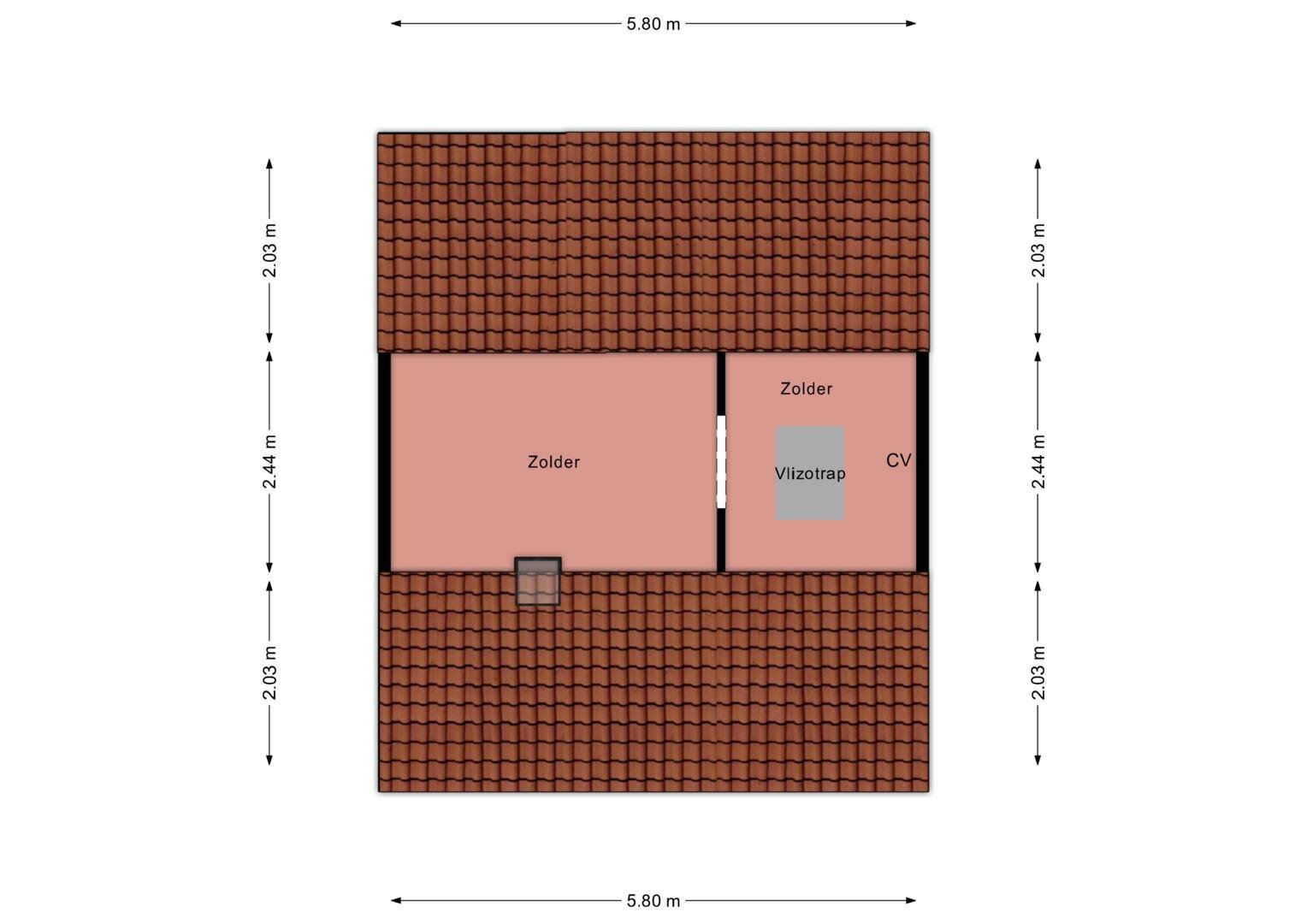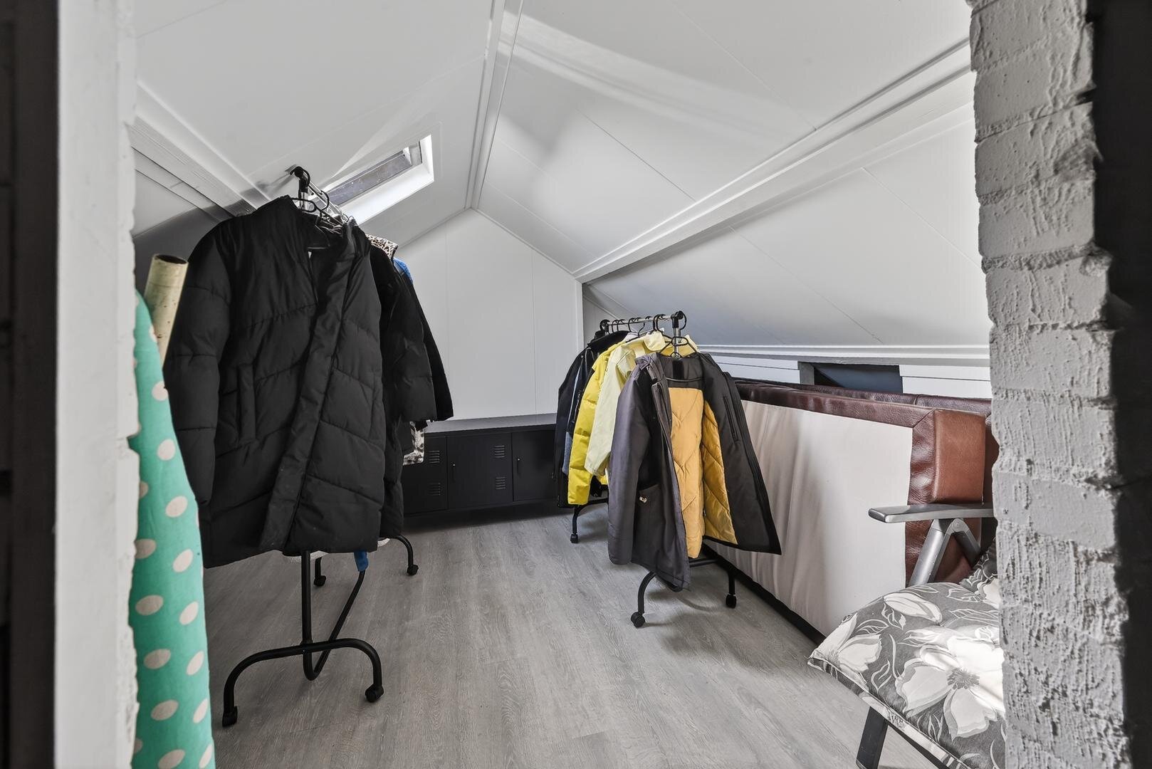 Tweede verdieping: via een vlizotrap is de zolderberging te bereiken, waar de cv-ketel en mechanische ventilatie box zijn opgesteld en een klein dakraampje voor natuurlijk daglicht zorgt.