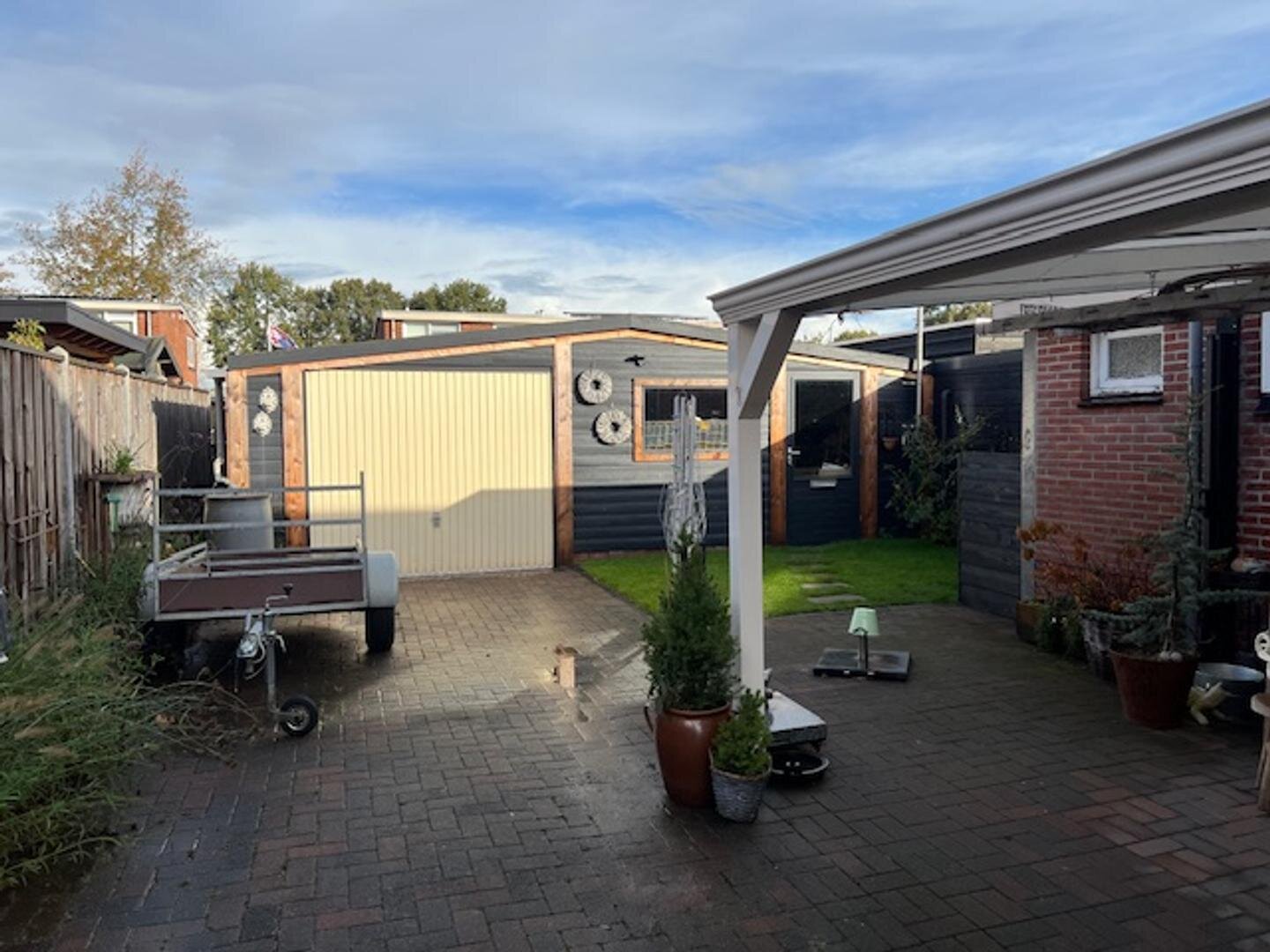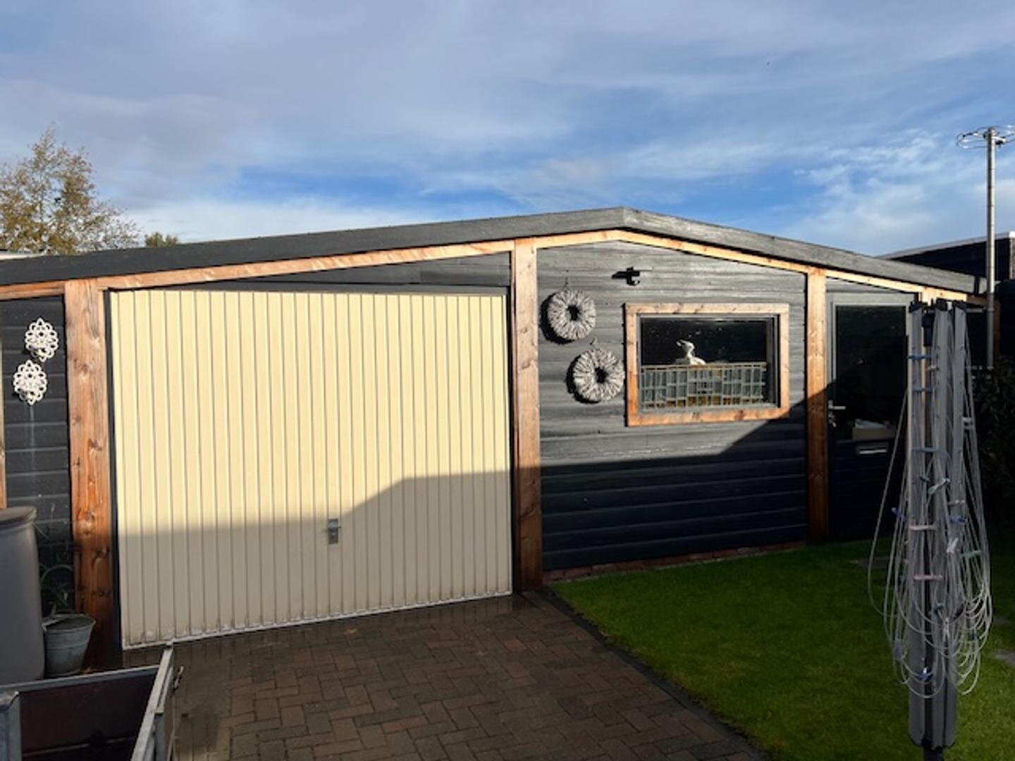 Buiten: Onderhoudsarme tuin gelegen op het Noorden, vrijstaande houten garage met aangebouwde schuur, in totaal circa 8x5 meter. Er is tevens een ruime veranda aanwezig en de naastgelegen inrit biedt ruimte voor meerdere auto's.