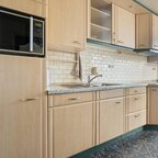 Begane grond: hal/entree, meterkast, garderobenis, toiletruimte v.v. hangtoilet en fonteintje, provisiekast, ruime doorzonwoonkamer van circa 27m². Aansluitend is de dichte keuken te bereiken. De keuken (ca. 2000) is voorzien van een koelkast, vaatwasser, keramische kookplaat en afzuigkap en in de aanbouw is tevens de wasmachineaansluiting gerealiseerd. De begane grond is netjes afgewerkt en biedt, mede door de grote raampartijen, veel lichtinval.