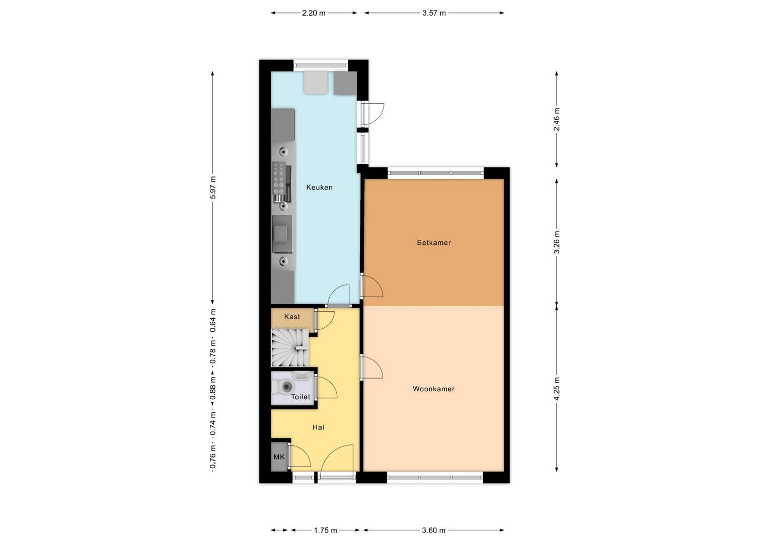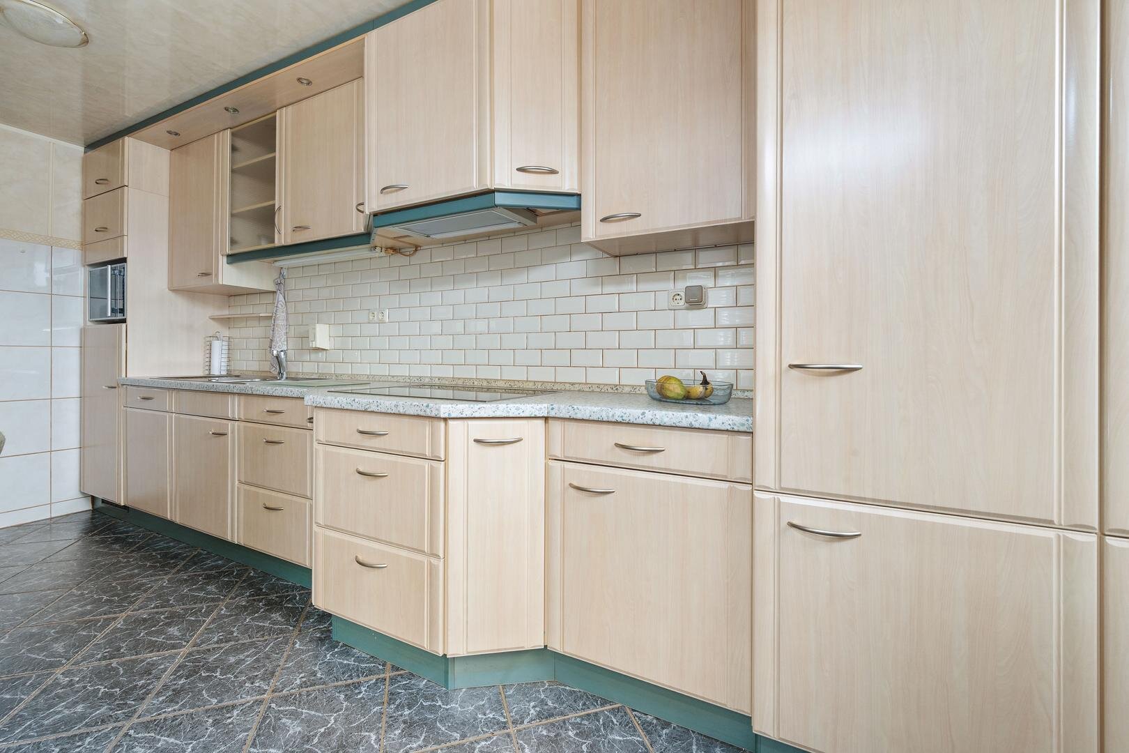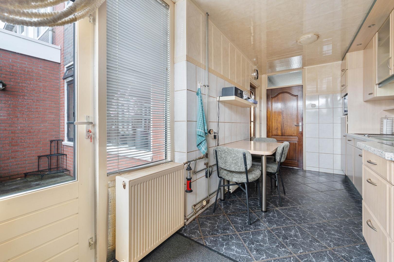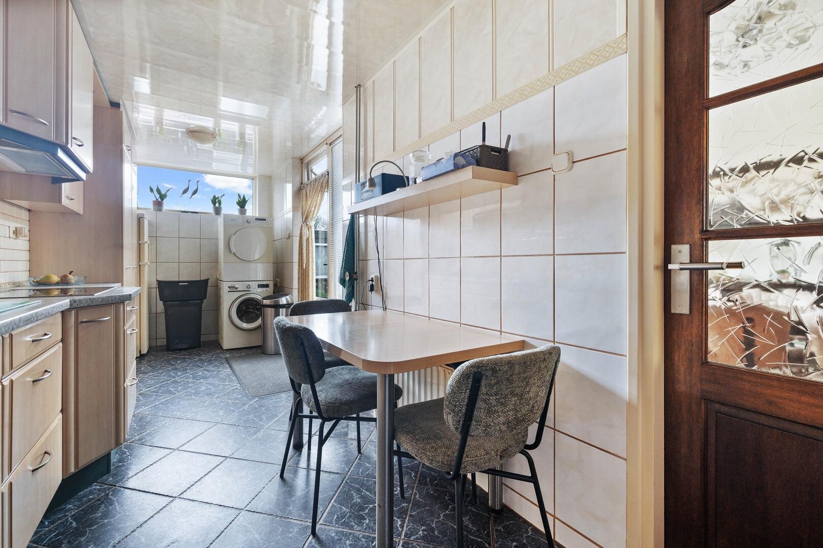 Begane grond: hal/entree, meterkast, garderobenis, toiletruimte v.v. hangtoilet en fonteintje, provisiekast, ruime doorzonwoonkamer van circa 27m². Aansluitend is de dichte keuken te bereiken. De keuken (ca. 2000) is voorzien van een koelkast, vaatwasser, keramische kookplaat en afzuigkap en in de aanbouw is tevens de wasmachineaansluiting gerealiseerd. De begane grond is netjes afgewerkt en biedt, mede door de grote raampartijen, veel lichtinval.