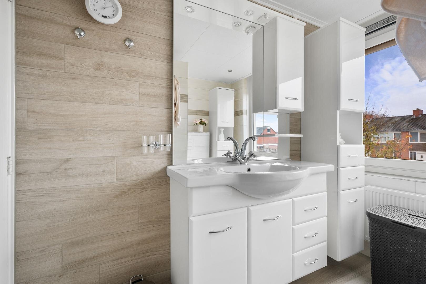 1e verdieping: vanaf de overloop heeft u toegang tot 3 prima slaapkamers. Op de overloop bevinden zich tevens een aparte inloopkast en de complete badkamer (2016), voorzien van wastafelmeubel, douchecabine en 2e toilet. De verdieping is vanwege de rechte wanden praktisch in gebruik en het geheel is netjes afgewerkt.