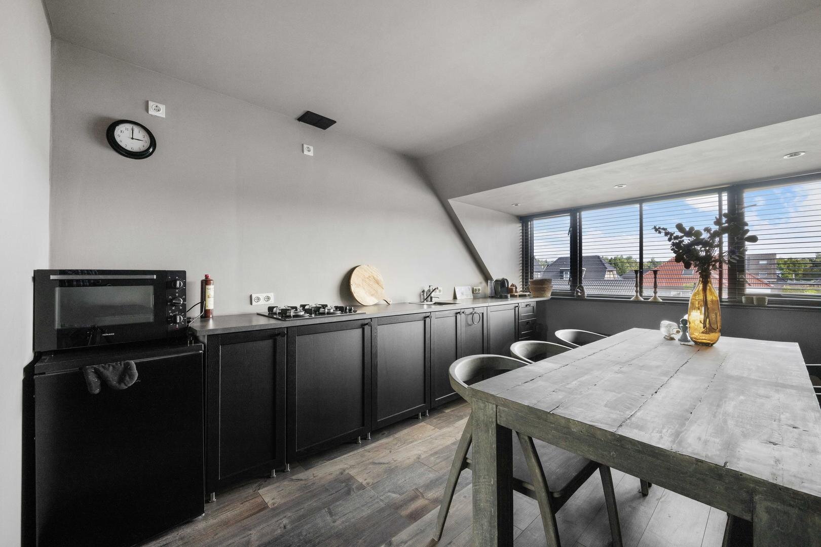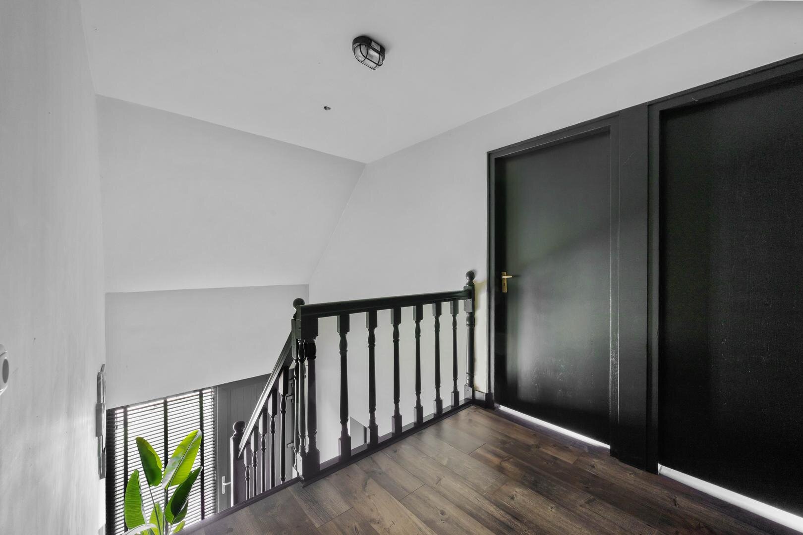 Eerste verdieping: op deze verdieping met overloop en vide bevinden zich de CV-berging, een moderne badkamer met wastafelmeubel, douchecabine, een tweede toilet en wasmachine-aansluiting, 2 ruime slaapkamers en een riant vormgegeven gastenverblijf v.v. 2 dakkapellen, met keuken die is voorzien van een nieuwe inbouwkeuken. Een perfect woonverblijf voor gasten!