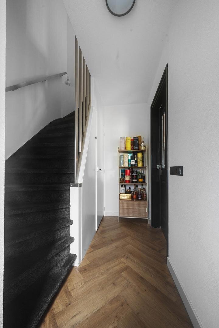 Begane grond: via de entree betreedt u een ruime hal met meterkast, gevolgd door een moderne toiletruimte uit 2020 met ventilatie en een praktische provisiekelder. De woning opent zich vervolgens naar een lichte woonkamer met een prachtig uitzicht, voorzien van airconditioning, die naadloos overloopt in de open, moderne keuken uit 2021. Deze keuken is voorzien van een vaatwasser, inductiekookplaat, stoomoven en combi-oven. Via de keuken bereikt u de achterentree/hal, die toegang geeft tot een slaapkamer en een badkamer met toilet en witgoedaansluitingen. De gehele verdieping is keurig afgewerkt, modern ingericht en grotendeels voorzien van PVC visgraadvloeren.