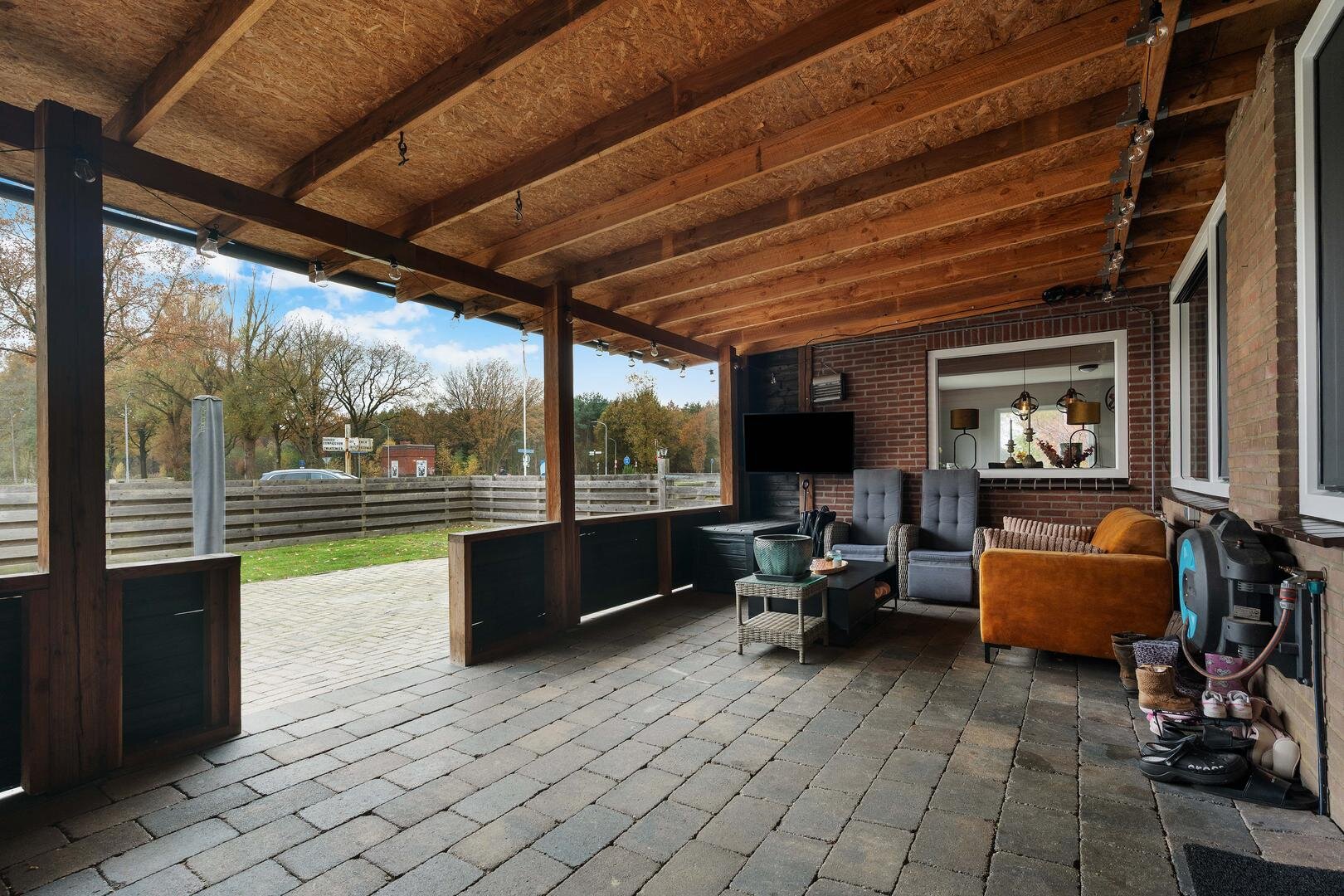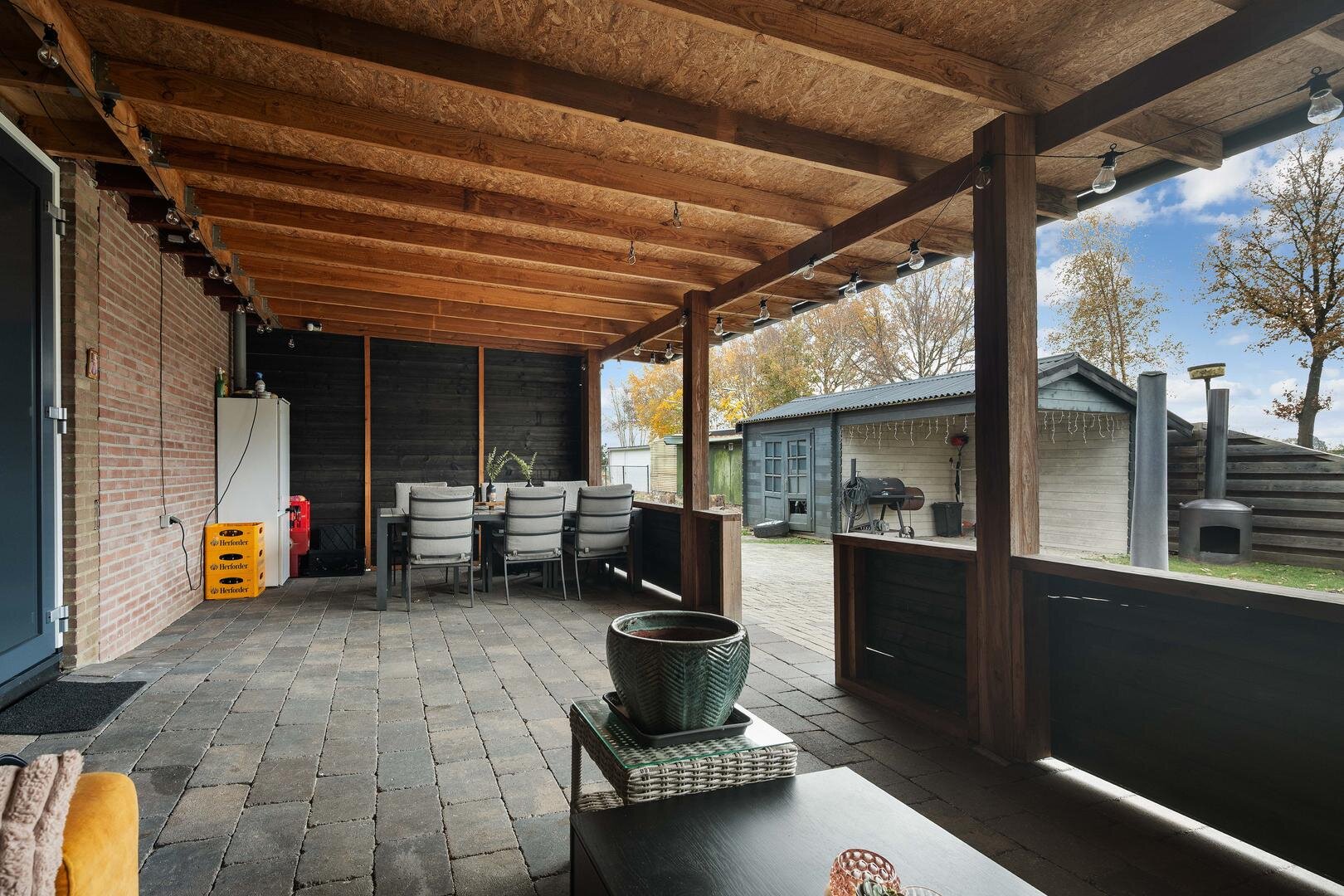 Tuin en bijgebouwen: de woning wordt omringd door een prachtige tuin, beginnend met een groene voortuin met gazon en een ruime oprit die naast de woning doorloopt naar achteren voor volop parkeergelegenheid; hier treft u tevens een ruime veranda aan het huis met een prachtig zijuitzicht, een praktisch houten schuurtje met overkapping, en een grote, gedeeltelijk geïsoleerde loods (6x11m), thans casco uitgevoerd, die voorzien is van een voorbereiding op krachtstroom. De enorme, ruime achtertuin met gazon grenst aan een speelplaats.