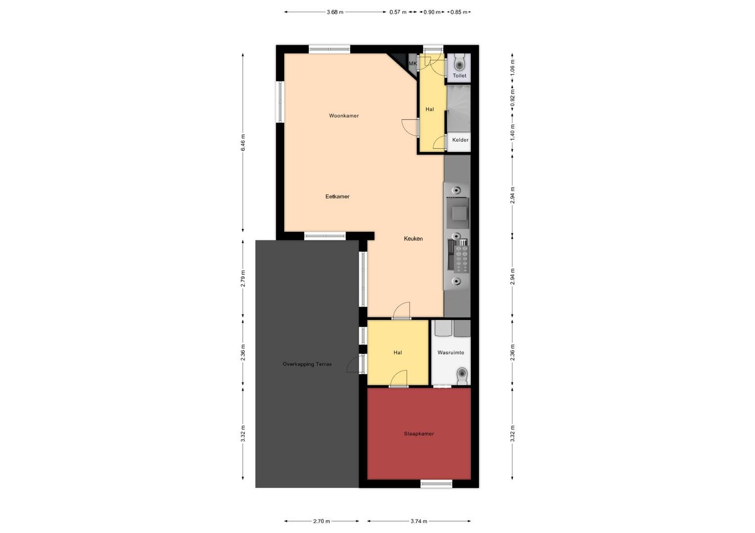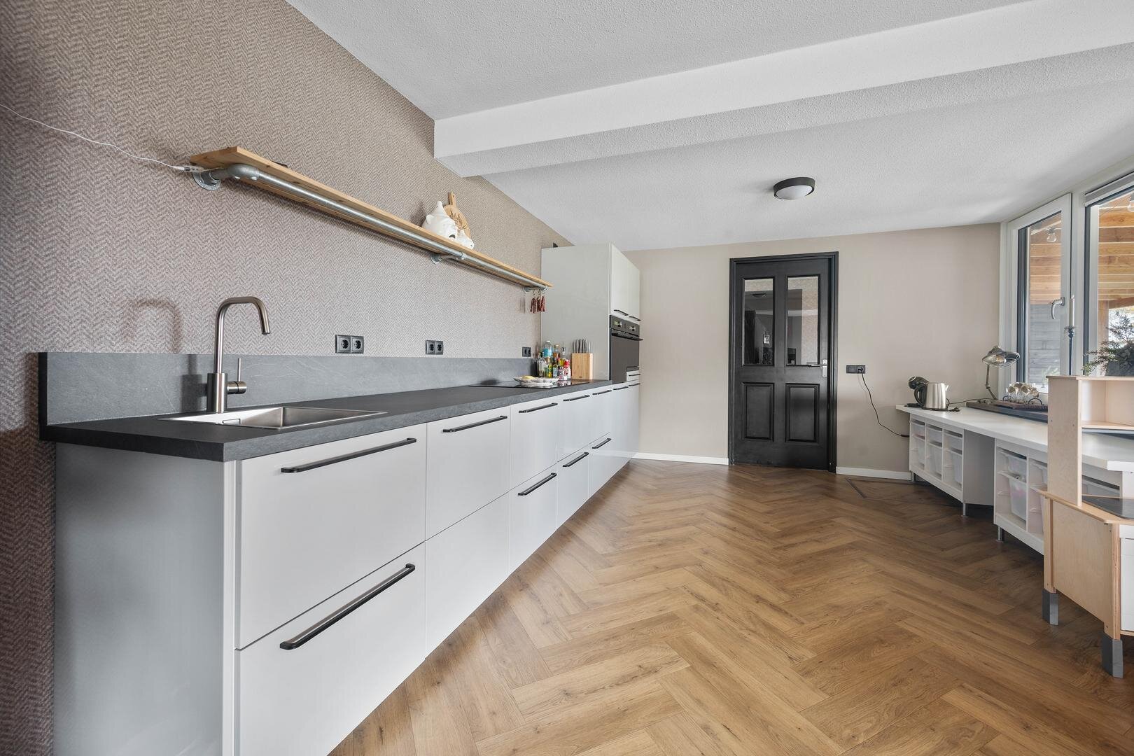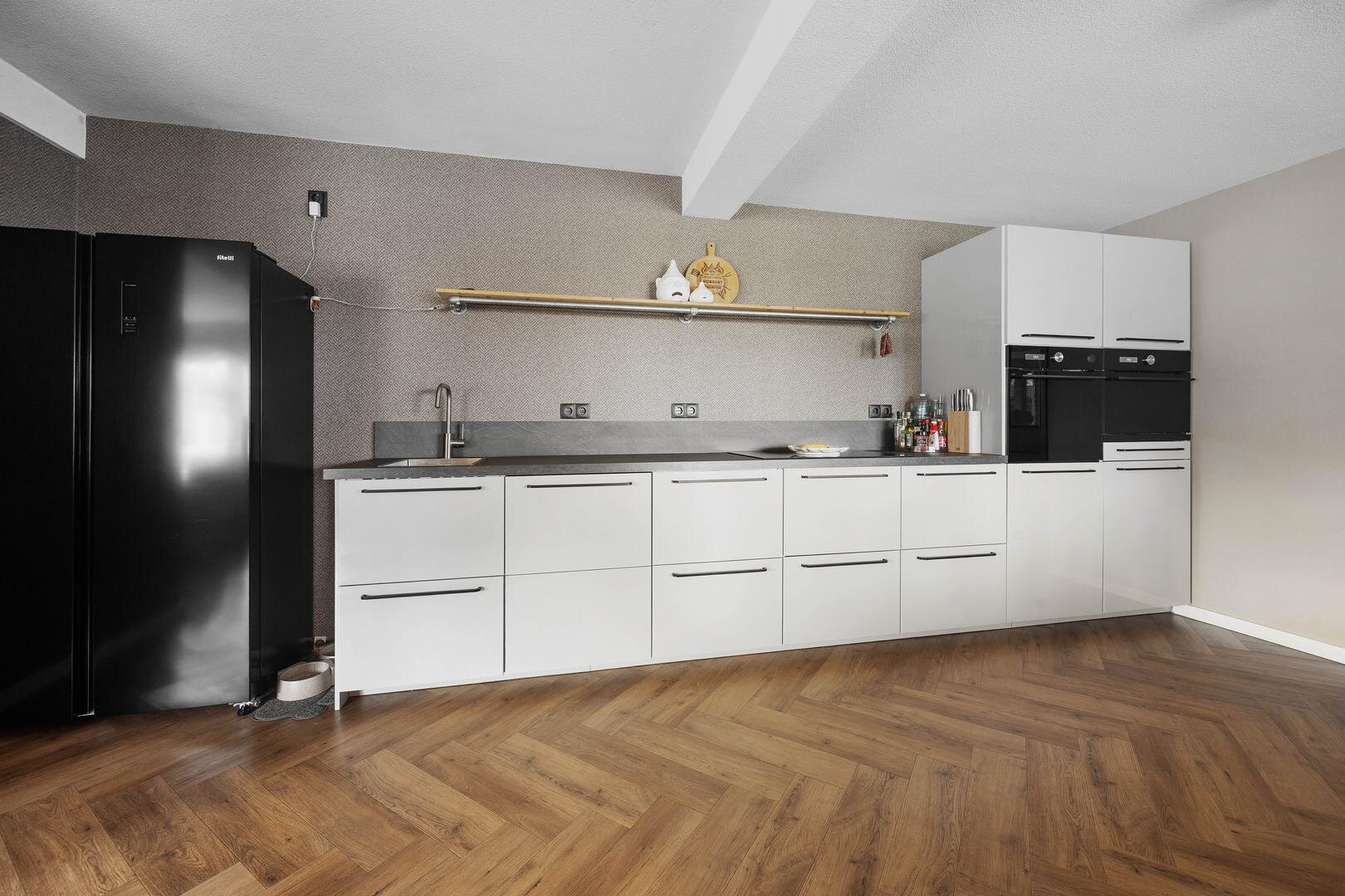Begane grond: via de entree betreedt u een ruime hal met meterkast, gevolgd door een moderne toiletruimte uit 2020 met ventilatie en een praktische provisiekelder. De woning opent zich vervolgens naar een lichte woonkamer met een prachtig uitzicht, voorzien van airconditioning, die naadloos overloopt in de open, moderne keuken uit 2021. Deze keuken is voorzien van een vaatwasser, inductiekookplaat, stoomoven en combi-oven. Via de keuken bereikt u de achterentree/hal, die toegang geeft tot een slaapkamer en een badkamer met toilet en witgoedaansluitingen. De gehele verdieping is keurig afgewerkt, modern ingericht en grotendeels voorzien van PVC visgraadvloeren.