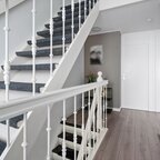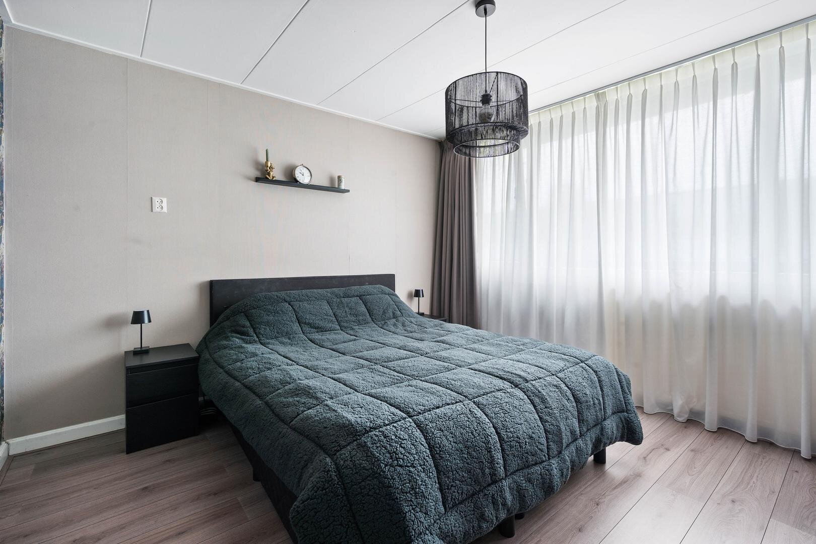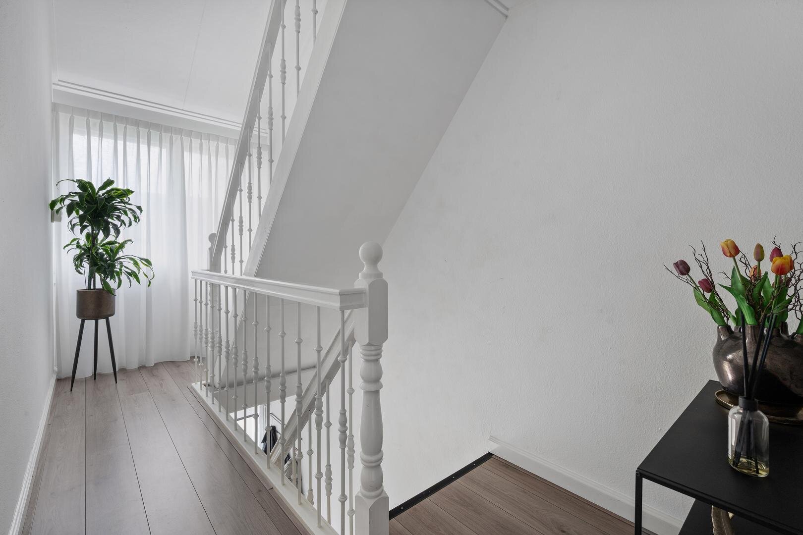 Eerste verdieping: de overloop geeft toegang tot drie prima slaapkamers, allen voorzien van nette laminaatvloeren (2023). De moderne badkamer is v.v. inloopdouche, een elegant wastafelmeubel en elektrische vloerverwarming. Alle slaapkamers zijn neutraal en keurig afgewerkt. Vanwege de rechte wanden ook zeer praktisch in gebruik.