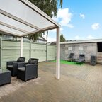 Tuin en bijgebouwen: de voortuin is voorzien van bestrating met parkeren voor de deur! De achtertuin is gelegen op het noordoosten en v.v. overkapping tegen het huis, sierbestrating, een bloemenborder en een vrijstaande stenen berging met een achterom.