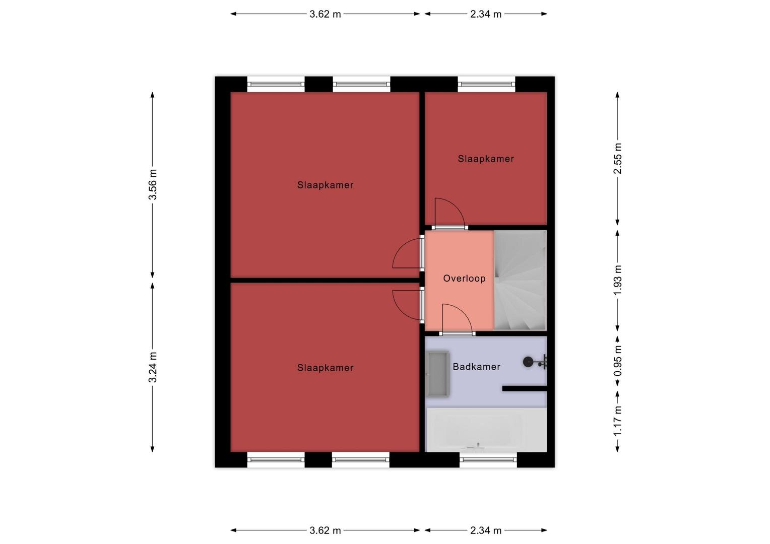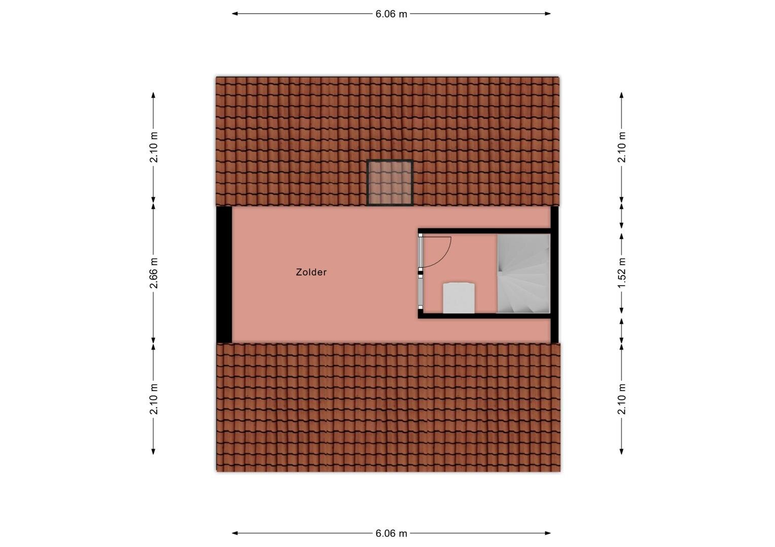 Tweede verdieping: via vaste trap naar de overloop, welke is voorzien van de opstelplaats CV-ketel en een wasmachineaansluiting, en geeft tevens toegang tot de 4e slaapkamer met dakraam.