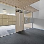 Begane grond: vanuit de afgesloten centrale hal met intercom bereikt u via de liftinstallatie of het trappenhuis met bordestrap naar de eerste verdieping, waarna u over de galerij bij de entree van het appartement komt.