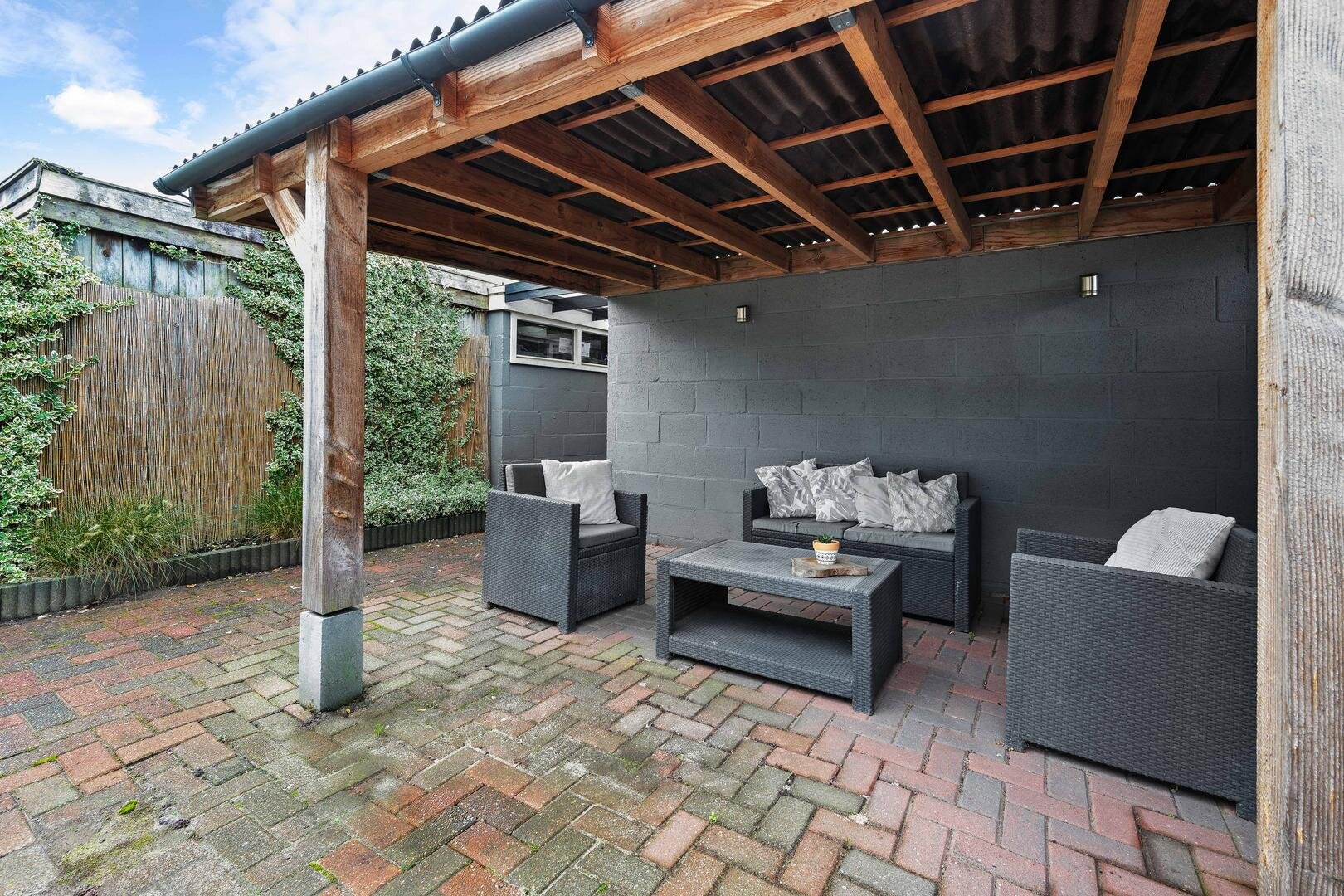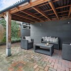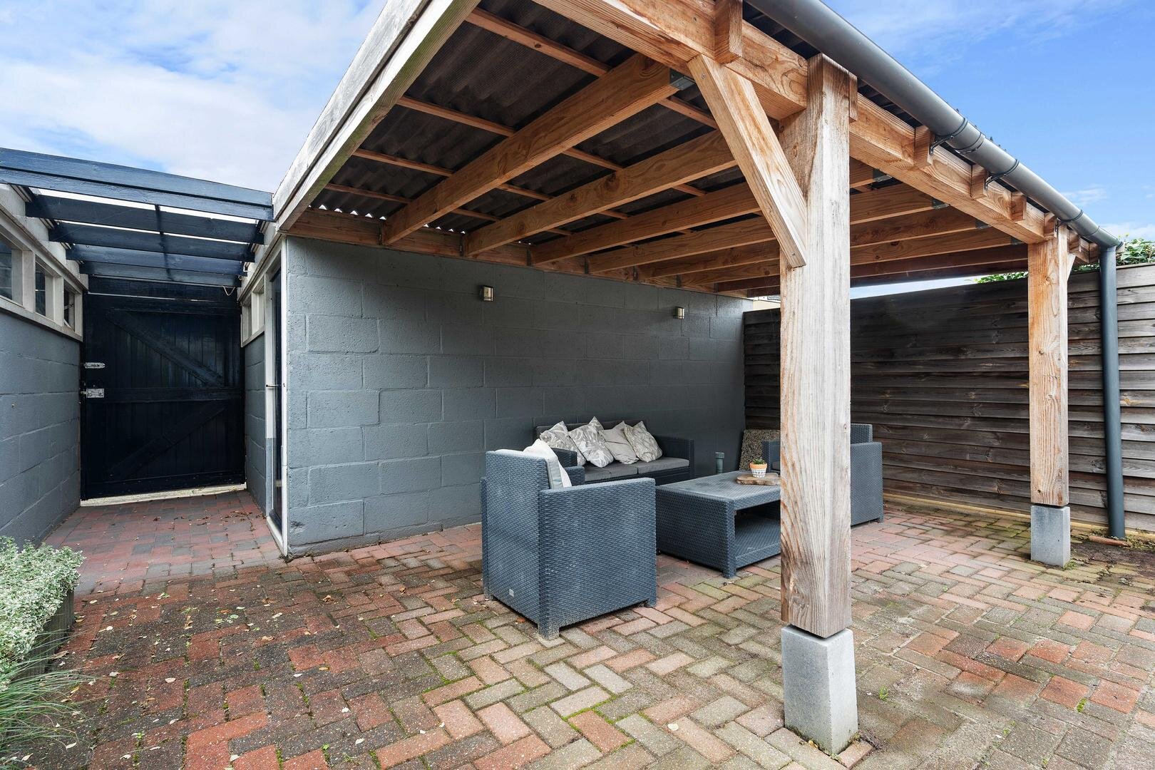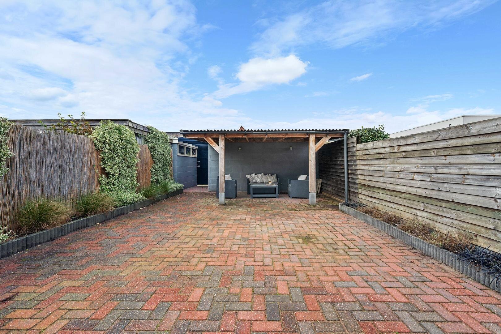 Tuin en bijgebouwen: de woning heeft een voortuin met sierbestrating en een klein tuintje, terwijl de op het westen gelegen achtertuin is voorzien van sierbestrating, een stenen berging/schuur met sfeervolle aangebouwde overkapping uit 2022.