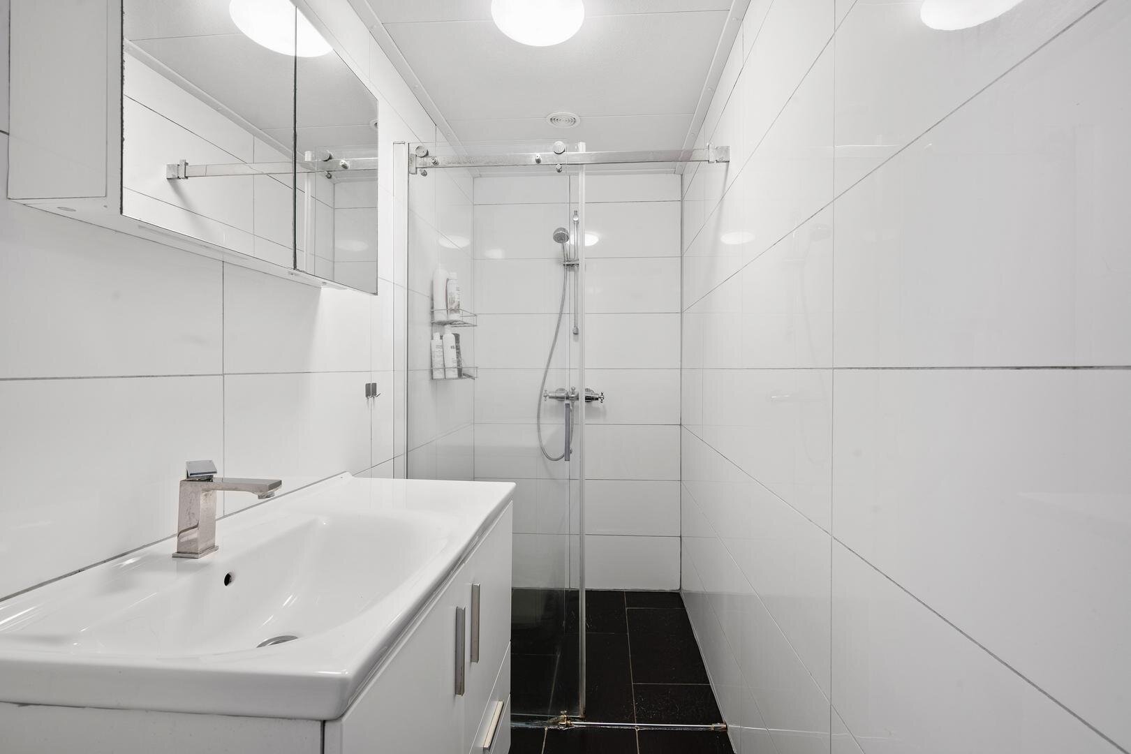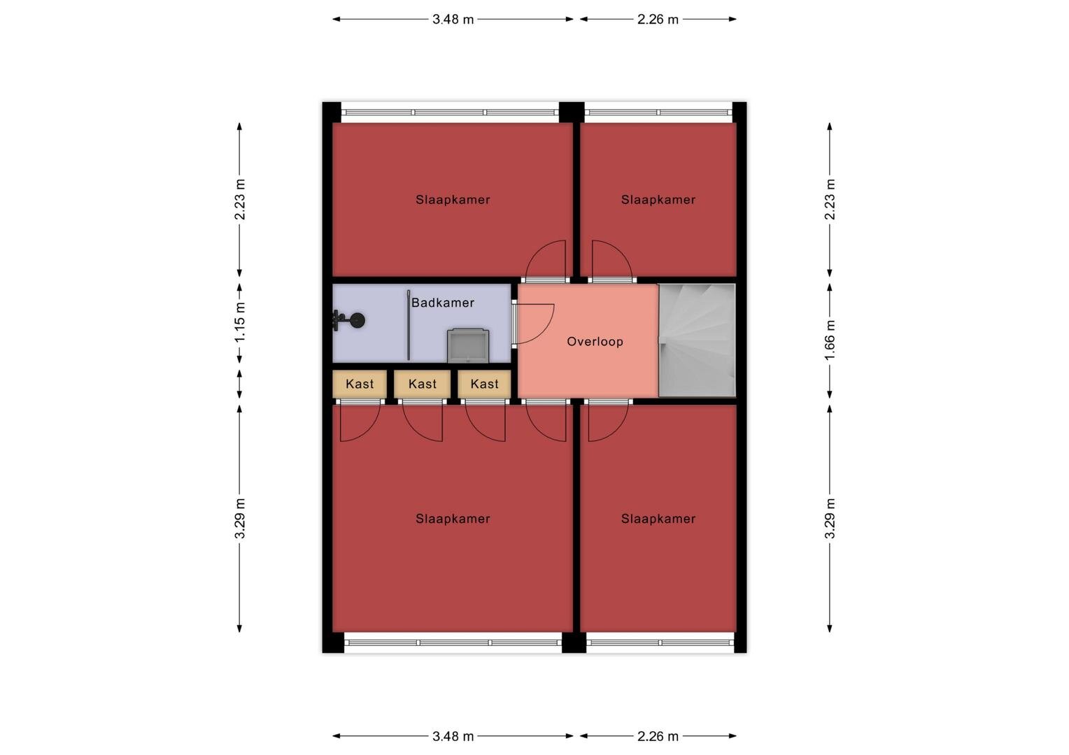 Eerste verdieping: de overloop geeft toegang tot 4 slaapkamers en een moderne badkamer uit 2017, voorzien van een douchehoek en een vaste wastafelmeubel, waarbij de gehele verdieping is voorzien van laminaatvloeren.