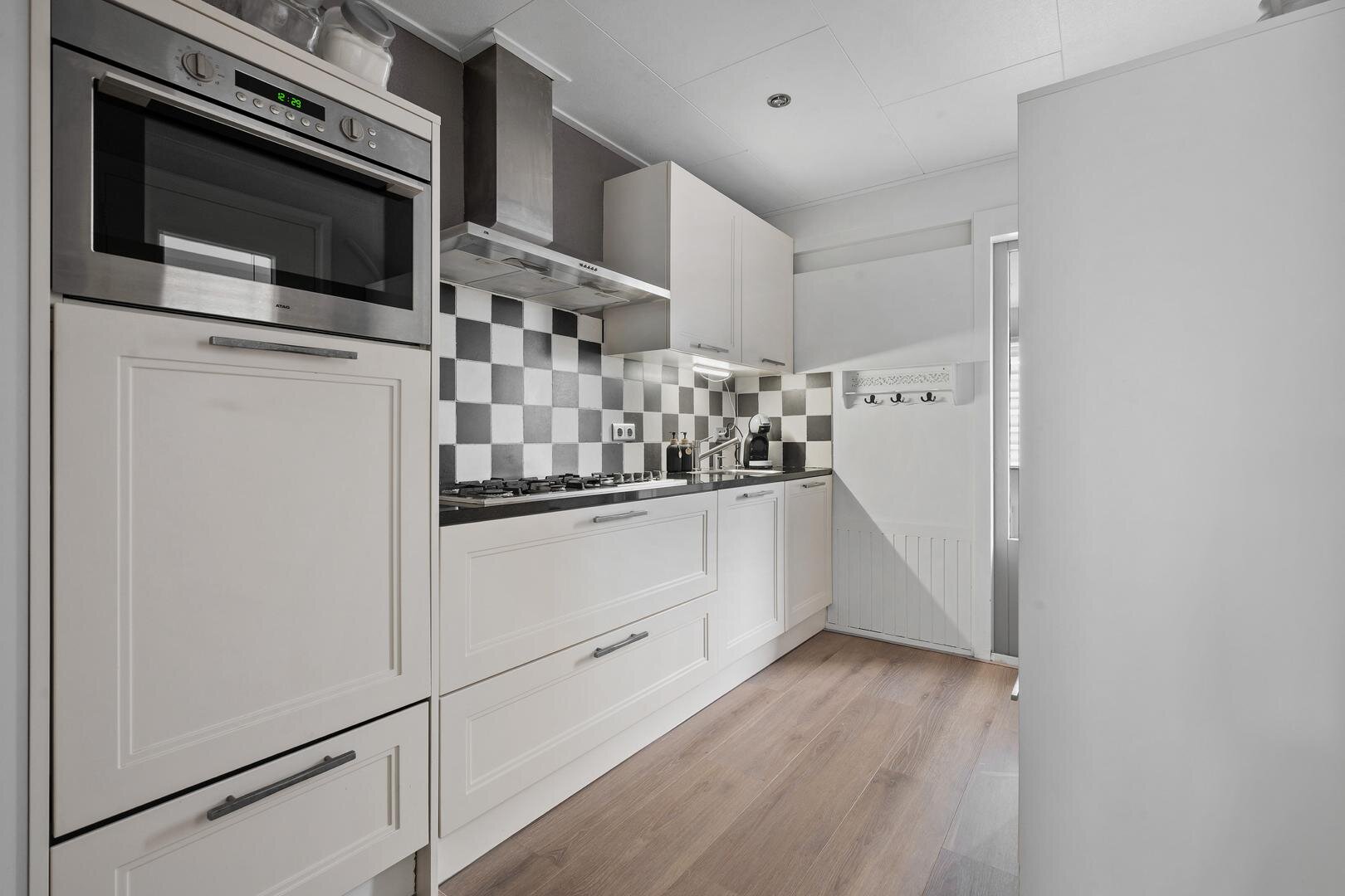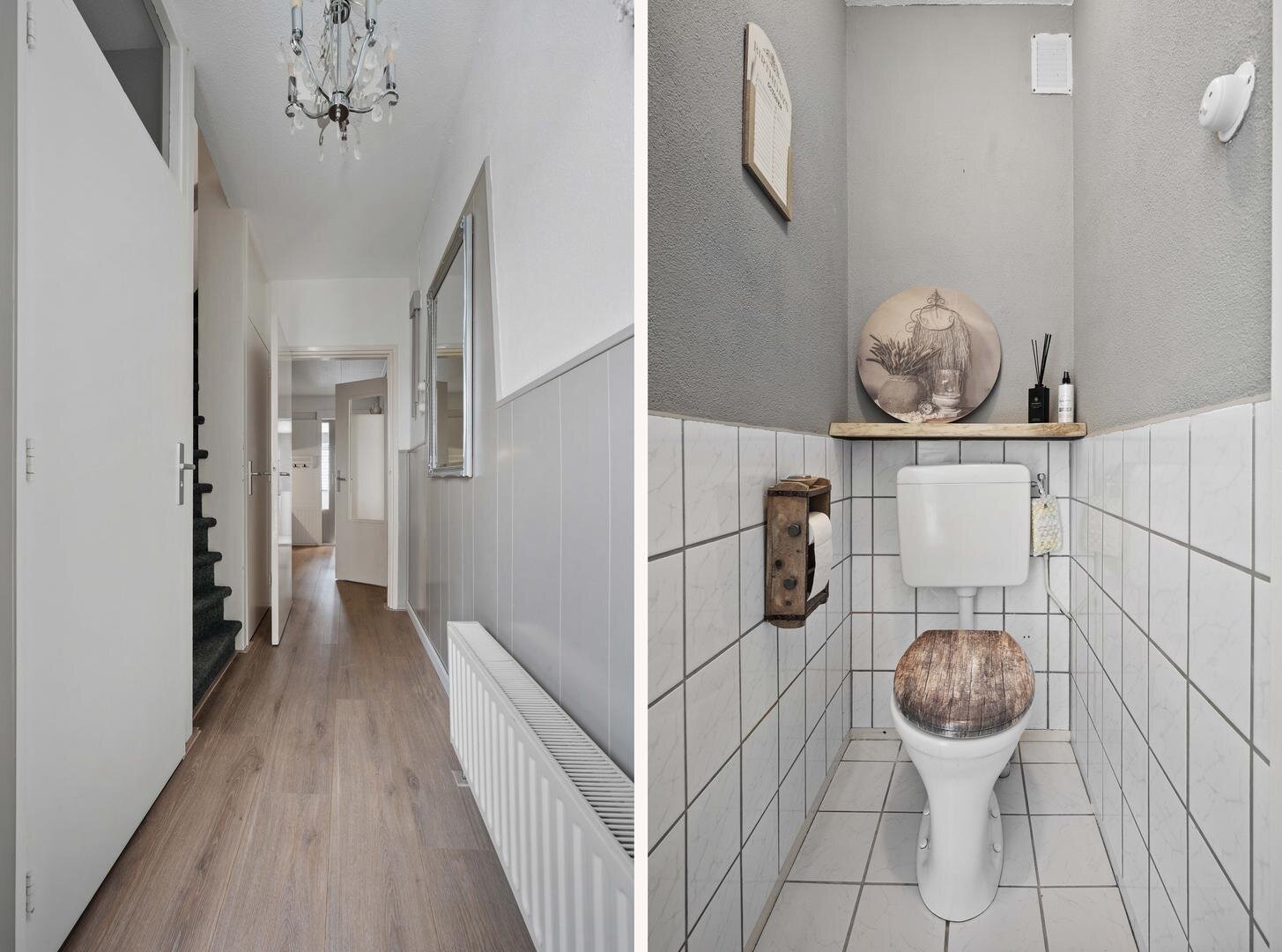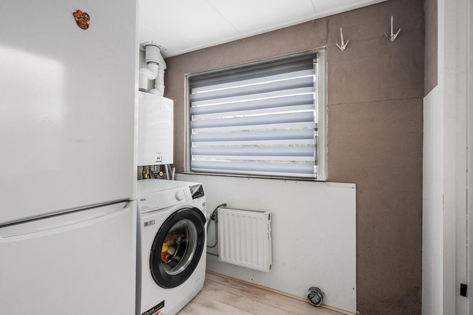 Begane grond: via de entree/hal betreedt u de woning, waar u direct de toiletruimte en een provisiekast/kelder aantreft, gevolgd door een dichte keuken met een moderne inbouwkeuken voorzien van vaatwasser, koelkast, kookplaat, afzuigkap en een combi-oven; de woning beschikt verder over een lichte woonkamer met een schoorsteenkanaal en een praktische bijkeuken met witgoedaansluitingen en cv-ketel, waarbij de begane grond is voorzien van moderne laminaatvloeren.