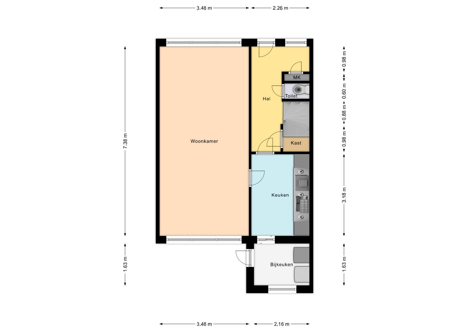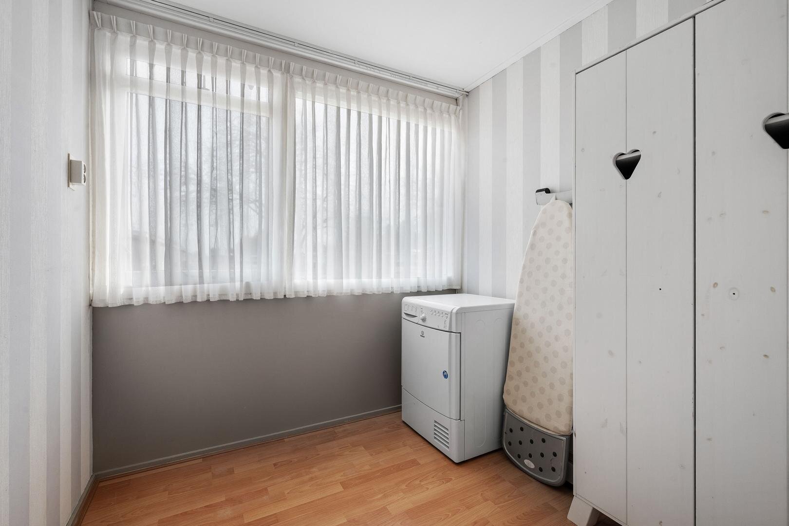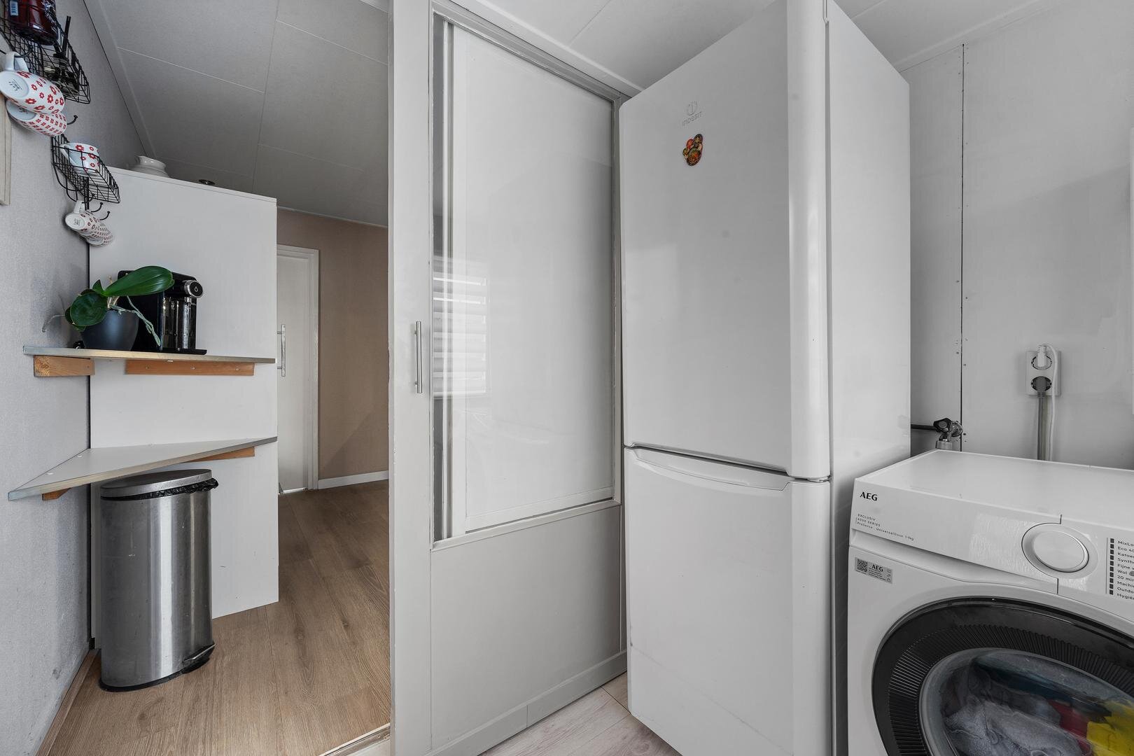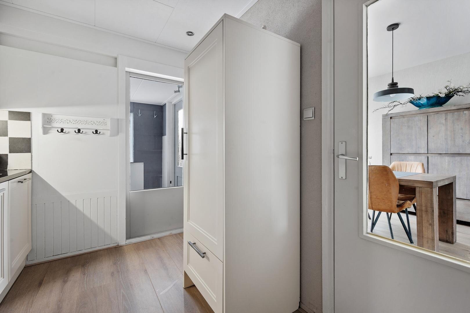 Begane grond: via de entree/hal betreedt u de woning, waar u direct de toiletruimte en een provisiekast/kelder aantreft, gevolgd door een dichte keuken met een moderne inbouwkeuken voorzien van vaatwasser, koelkast, kookplaat, afzuigkap en een combi-oven; de woning beschikt verder over een lichte woonkamer met een schoorsteenkanaal en een praktische bijkeuken met witgoedaansluitingen en cv-ketel, waarbij de begane grond is voorzien van moderne laminaatvloeren.